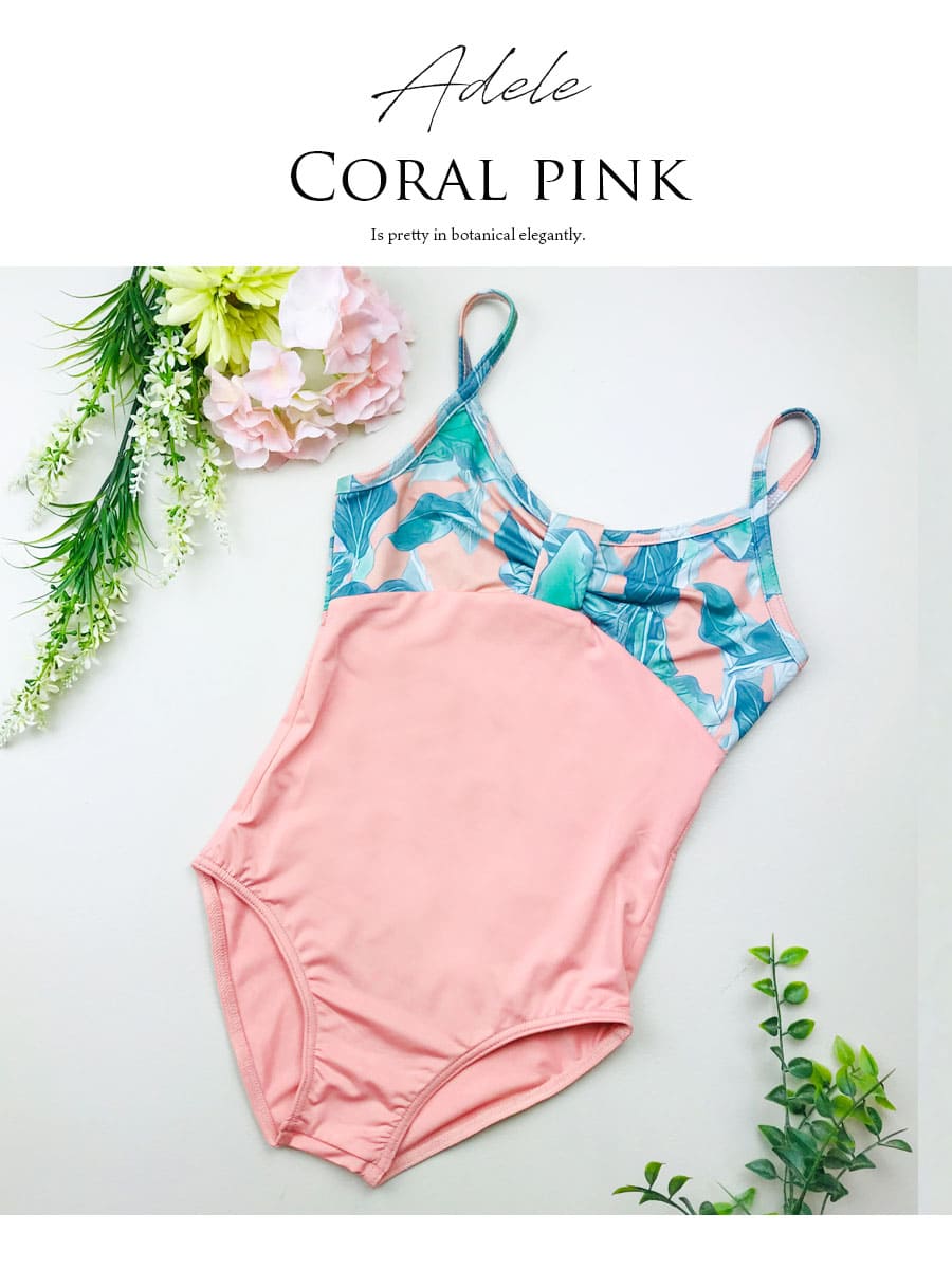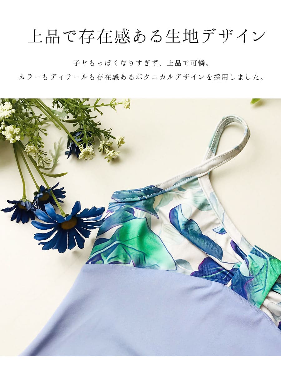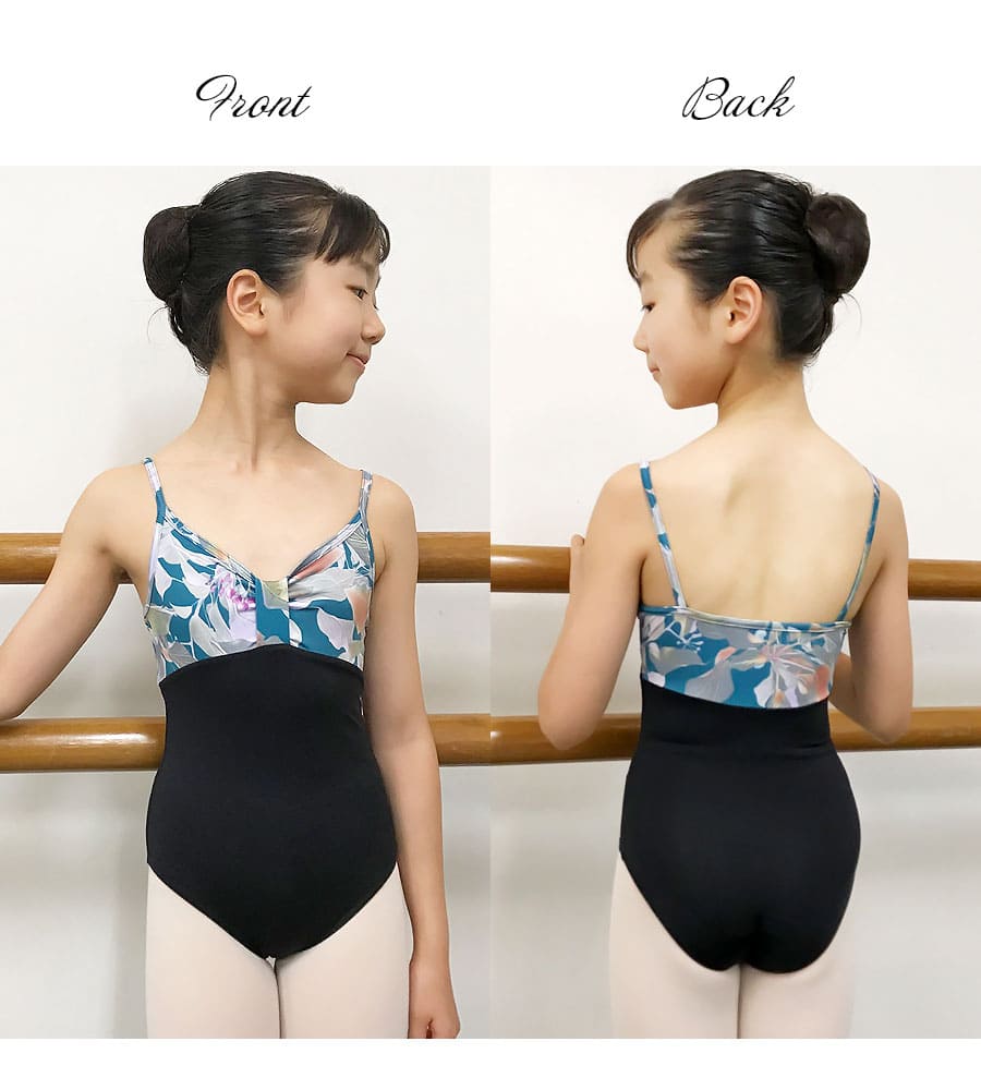日々のレッスンがもっと楽しくなる、上品で大人っぽい大胆なボタニカル風花柄素材を使ったキッズ・ジュニアレオタードです。