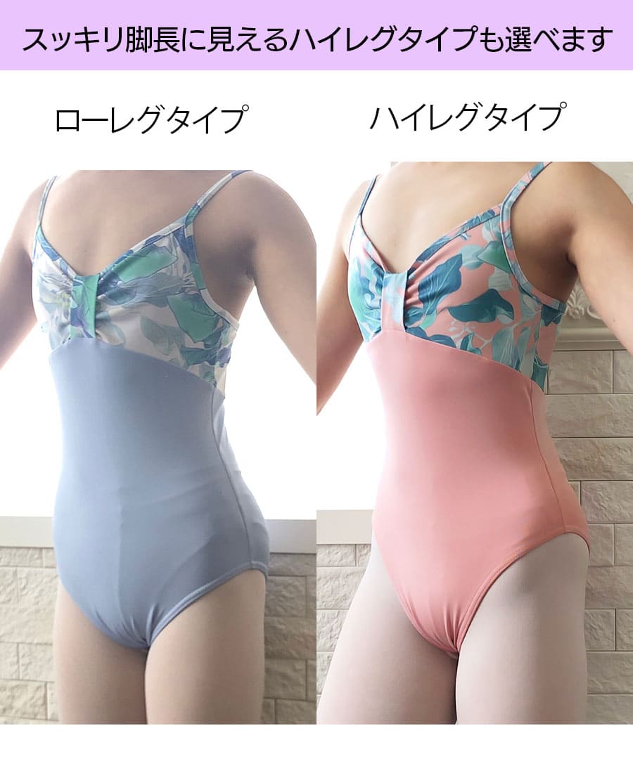 ballet shop abby【バレーショップアビー】オリジナルのローレグ(定番)タイプ・ハイレグが選べる!伸びの良いしなやかな素材を使った、リボンデザイン&ボタニカル風の上品で可愛いキッズ&ジュニアバレエレオタード。※こちらは「前身頃裏地あり」の商品となります。