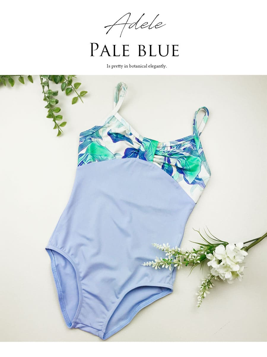 伸びが良くて、しなやかで、シルエットがキレイ…上品で可憐なボタニカル生地で華やかさを出した、アビーオリジナルデザインのキッズレオタードは、胸元のリボンデザインと、大胆なのに上品なグラフィックとカラー使いの生地を使い、派手さを抑えながら品の良い上品なイメージに仕上げた一枚です。