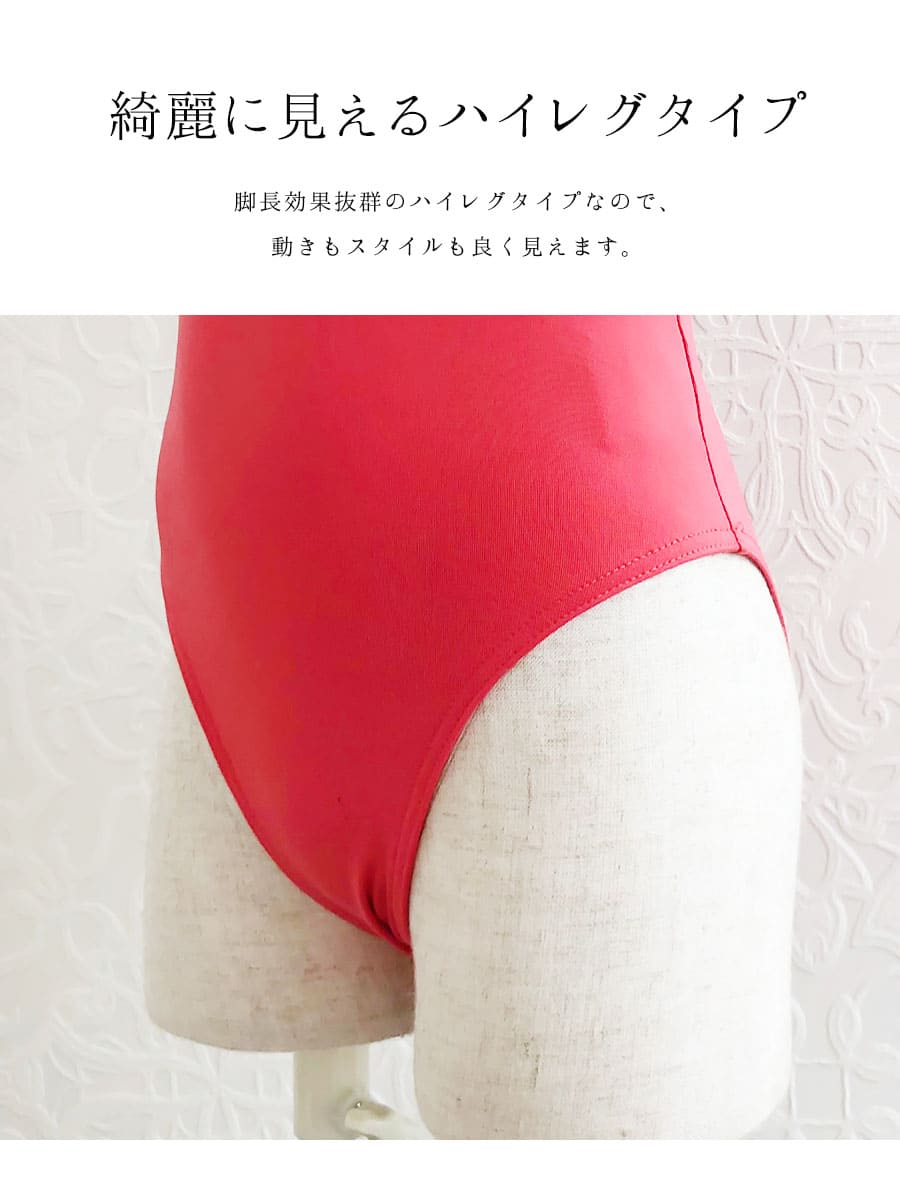シンプルかつ定番デザイン、もちろんレッスンの動きを妨げない細部まで調整したデザインと、伸びが良く、優しい肌触りの素材で仕上げました。裏地ありタイプ、脚長効果の高いハイレグタイプです。サイズもキッズからジュニアサイズまで揃えました。