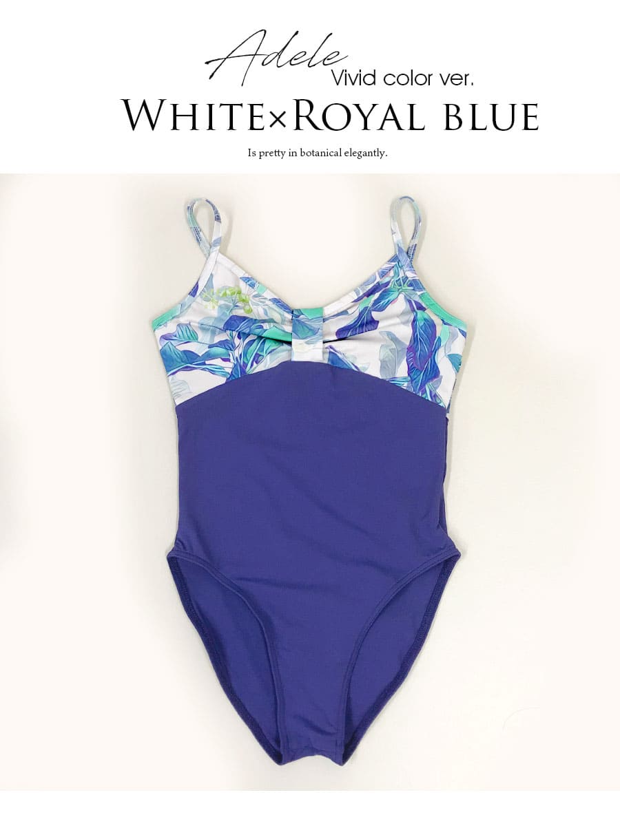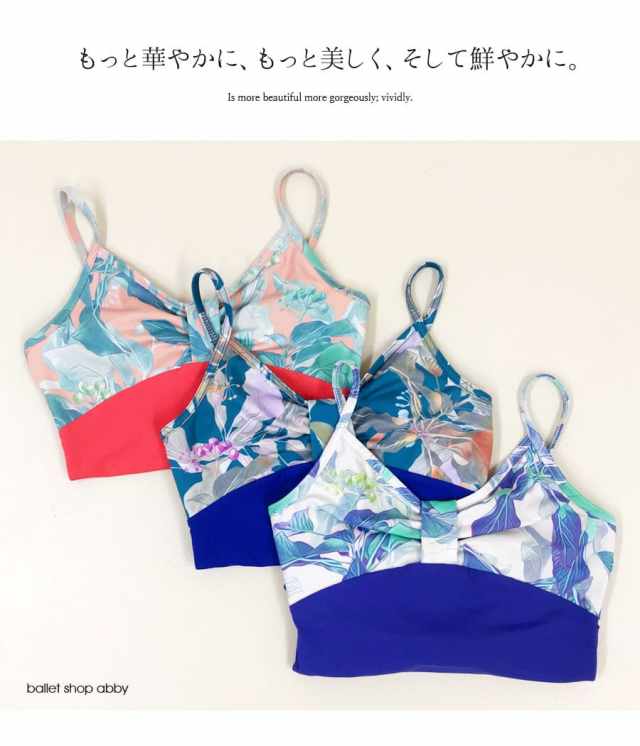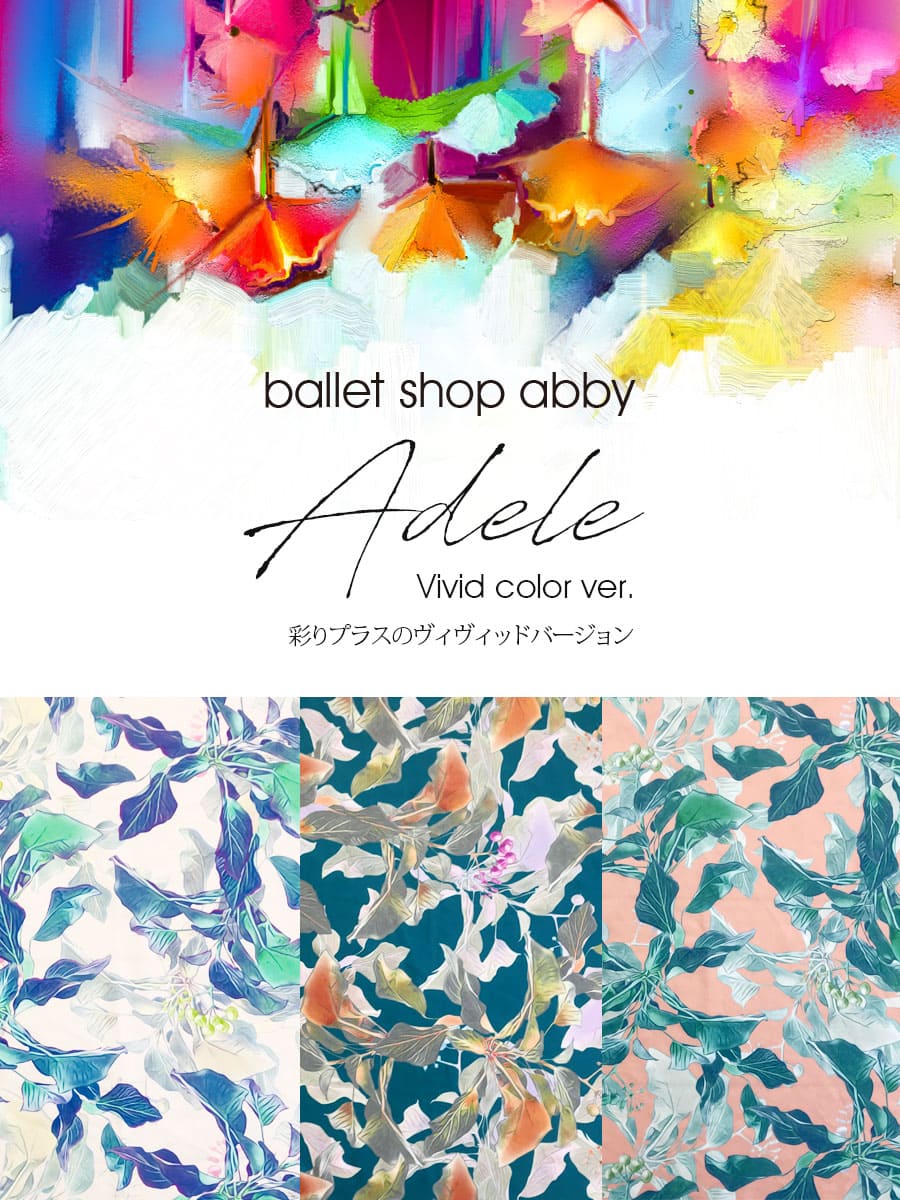 毎日のレッスンに彩りを。日々のレッスンがもっと楽しくなる、上品で大人っぽい大胆なボタニカル風花柄素材を使ったキッズ・ジュニアレオタードです。すでに発売中、大好評の「アデル」により鮮やかな彩りをプラスした「アデル・ヴィヴィッドバージョン」です。伸びが良くて、しなやかで、シルエットがキレイ…上品で可憐なボタニカル生地で華やかさを出した、アビーオリジナルデザインのキッズレオタードは、胸元のリボンデザインと、大胆なのに上品なグラフィックとカラー使いの生地を使い、派手さを抑えながら品の良い上品なイメージに仕上げた一枚です。シンプルかつ定番デザイン、もちろんレッスンの動きを妨げない細部まで調整したデザインと、伸びが良く、優しい肌触りの素材で仕上げました。裏地ありタイプ、脚長効果の高いハイレグタイプです。サイズもキッズからジュニアサイズまで揃えました。