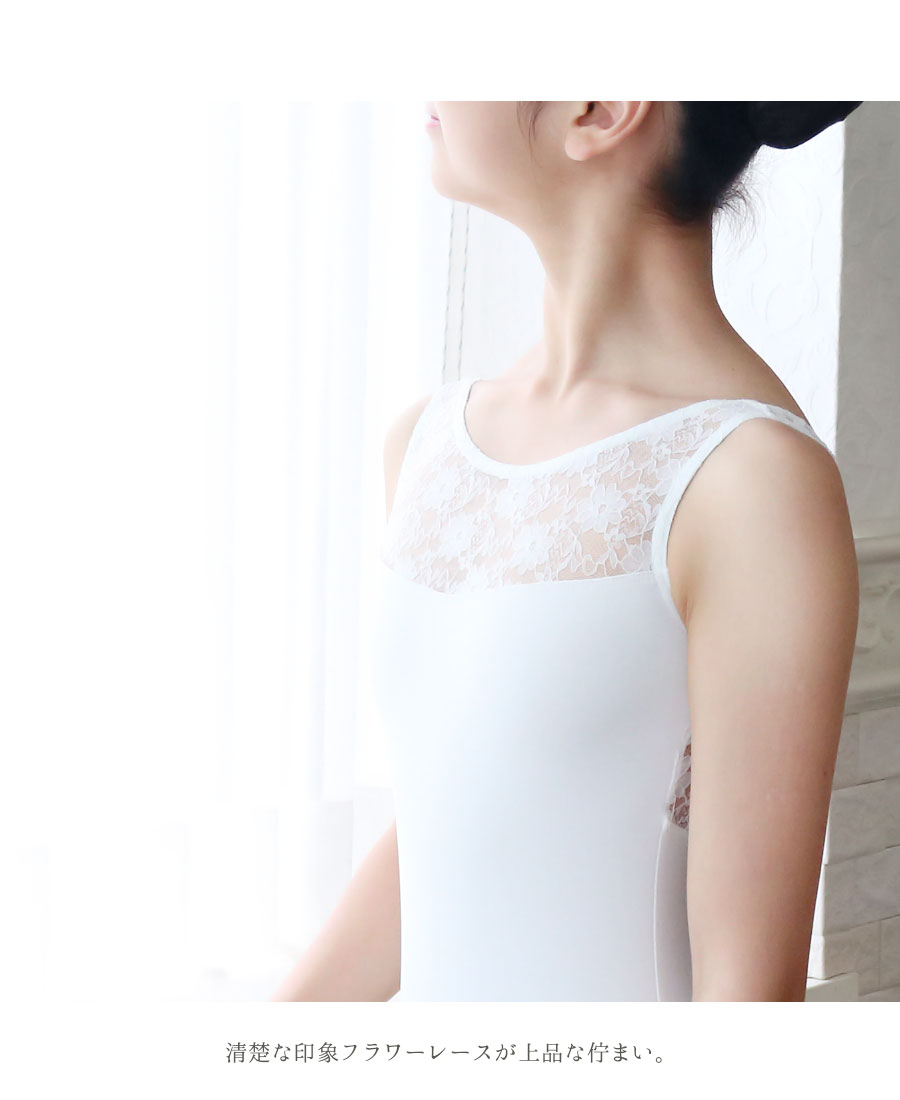清楚で上品なデザインが綺麗!人気のシアーレース使いのレオタードです。