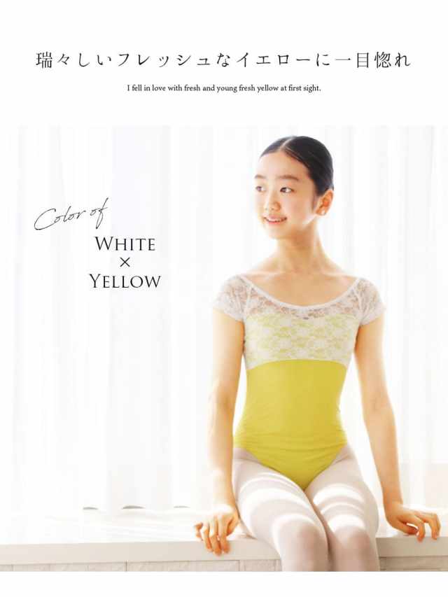 毎日のレッスンに彩りを。日々のレッスンがもっと楽しくなる、上品で可憐なレースの透け感が美しいキッズ・ジュニアレオタードです。人気の「マリィ」の着心地&デザインはそのままに、厳選したカラーを選びました。デコルテ部分&袖部分がレースのレオタードは胸まわりと袖をほっそり華奢に見せてくれます。素材も伸びが良くて、しなやかで、シルエットがキレイ。派手さを抑えながら品の良い上品なイメージに仕上げた一枚です。もちろんレッスンの動きを妨げない細部まで調整したデザインと、伸びが良く、優しい肌触りの素材で仕上げました。裏地ありタイプ、脚長効果の高いハイレグタイプです(バストポケットはありません)。サイズもキッズからジュニアサイズまで揃えました。