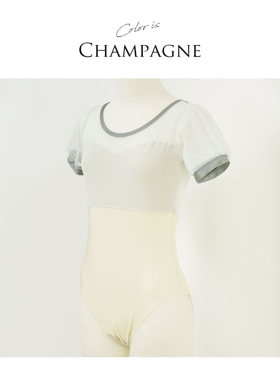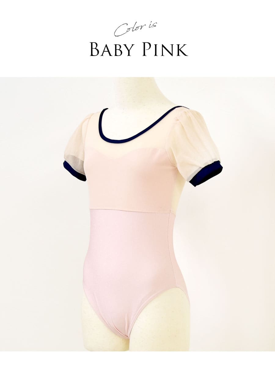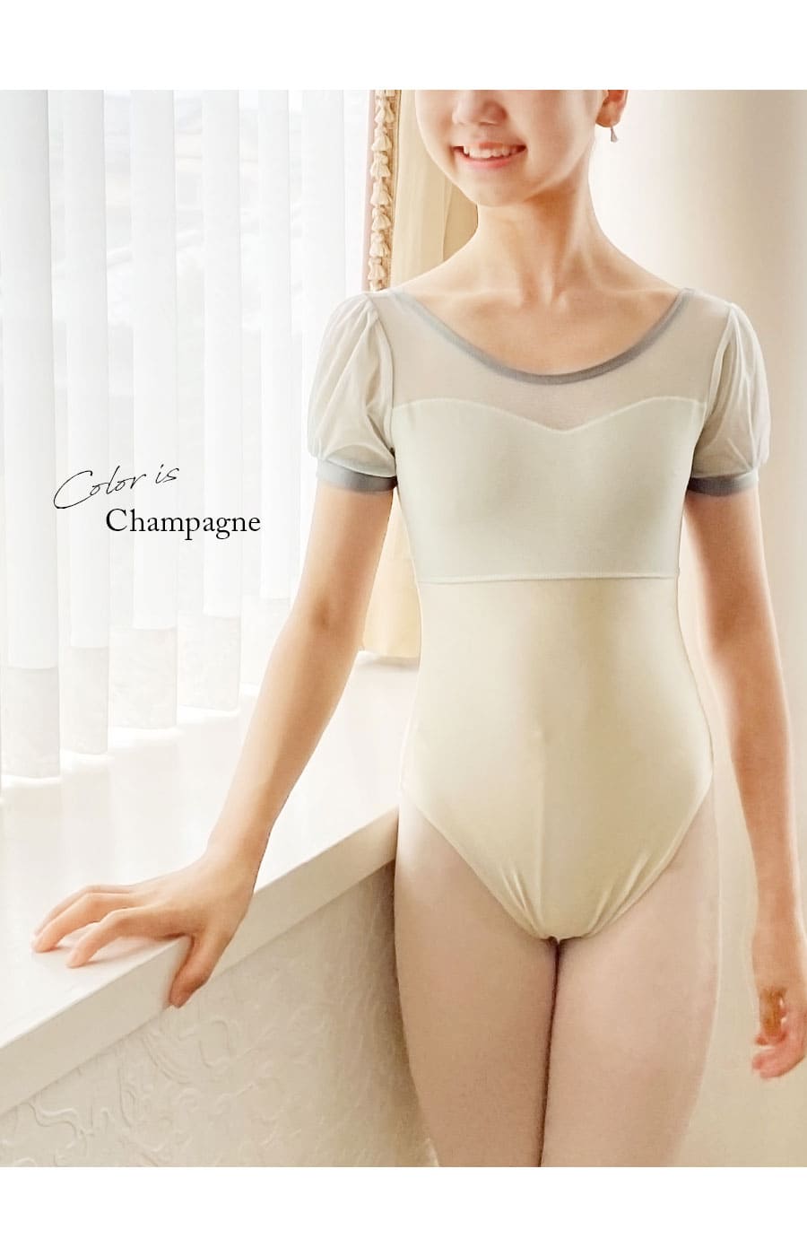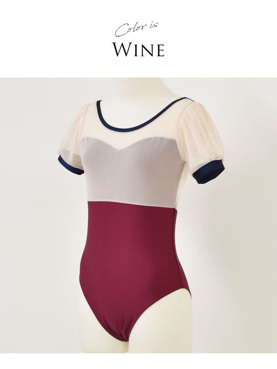 洗練されたカラーのトリミング、すこしふんわりしたパフィなチュール袖がロマンティックなレオタードです。