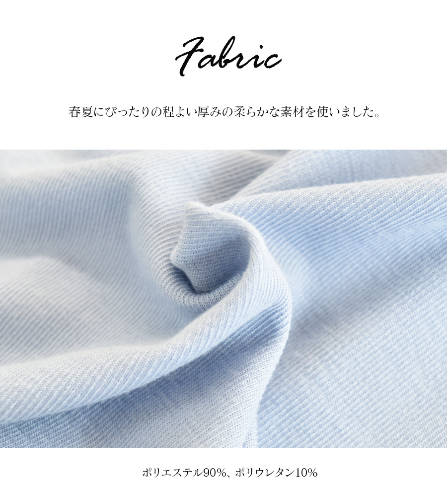 ほどよい厚みの柔らかな生地は着心地も抜群、お洗濯もしやすい素材感です・