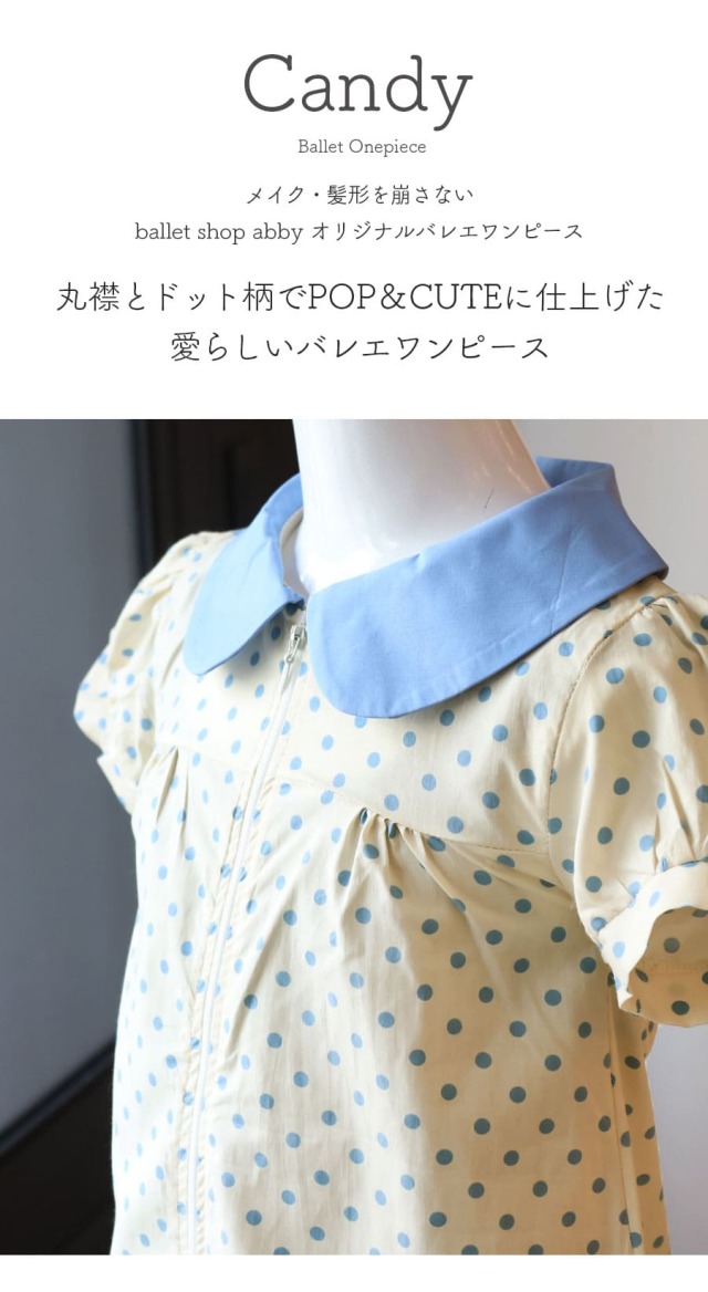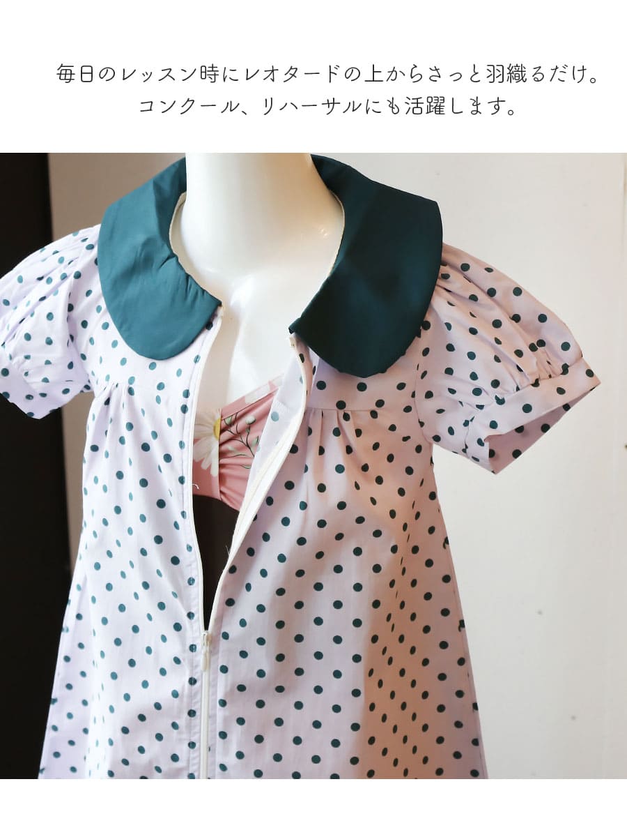 商品カテゴリ:バレエ レオタード トウシューズ バレエウエア バレエ教室 バレエコンクール バレエ発表会 ウォームアップ バレエワンピース 前開き ジップアップ ヘアメイク 半袖 春 夏 秋 ドット柄 ナチュラル クラシックバレエ【公式】ballet shop abby バレエショップアビー