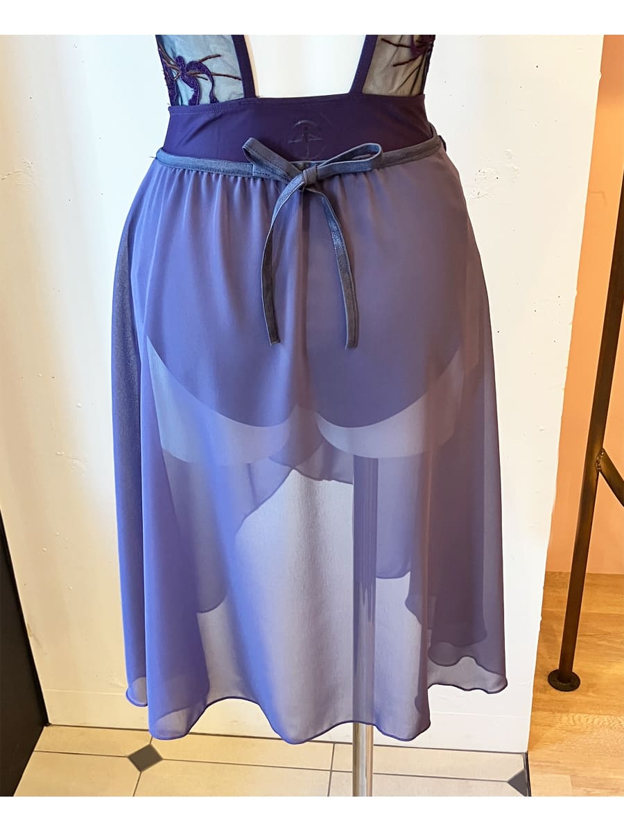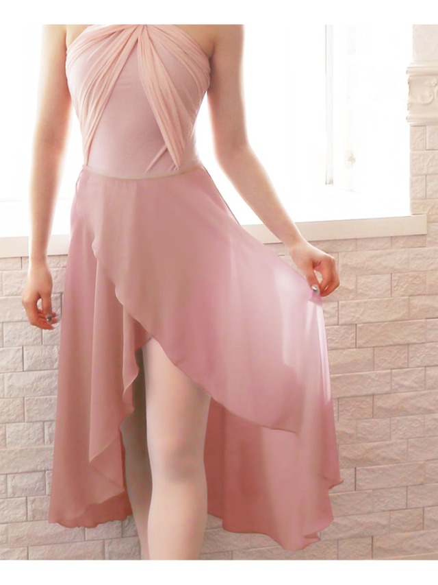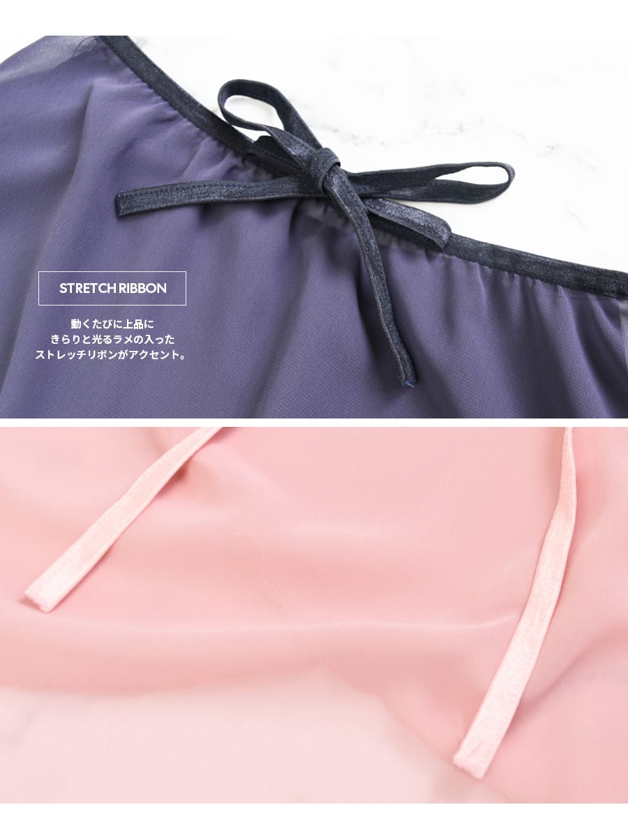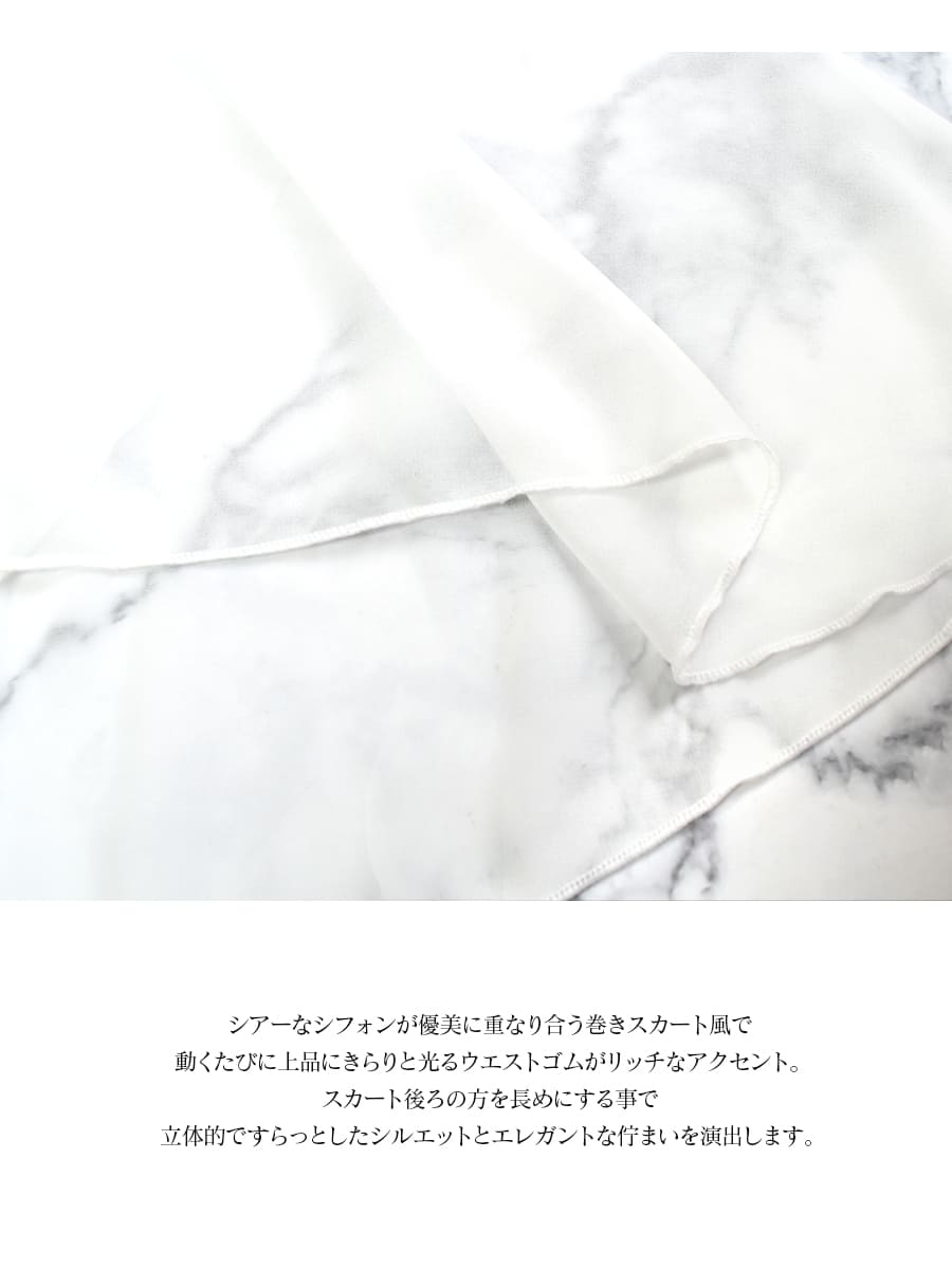 前面に透明感のあるシアーなシフォンが優美に重なり合う巻きスカート風。