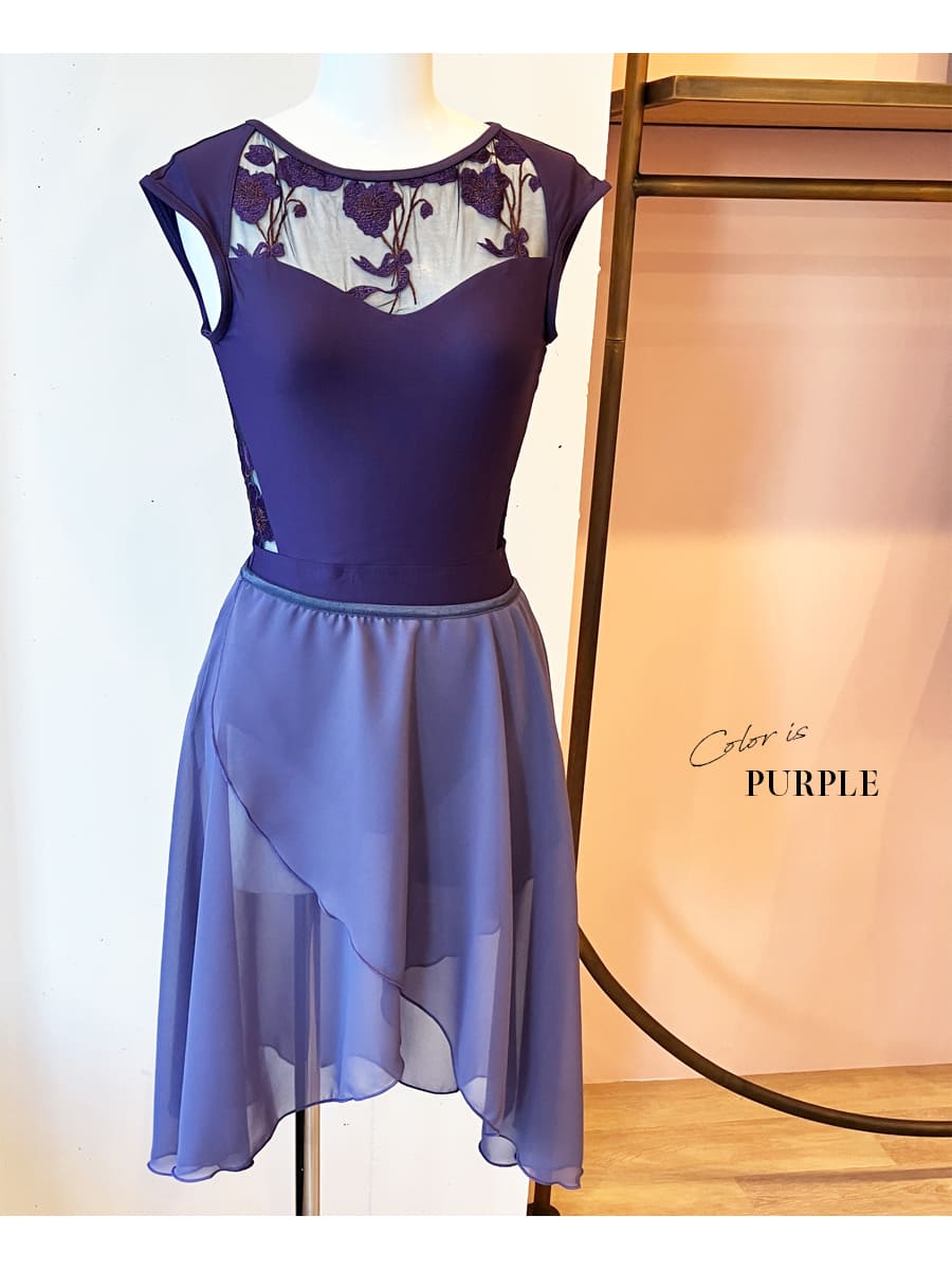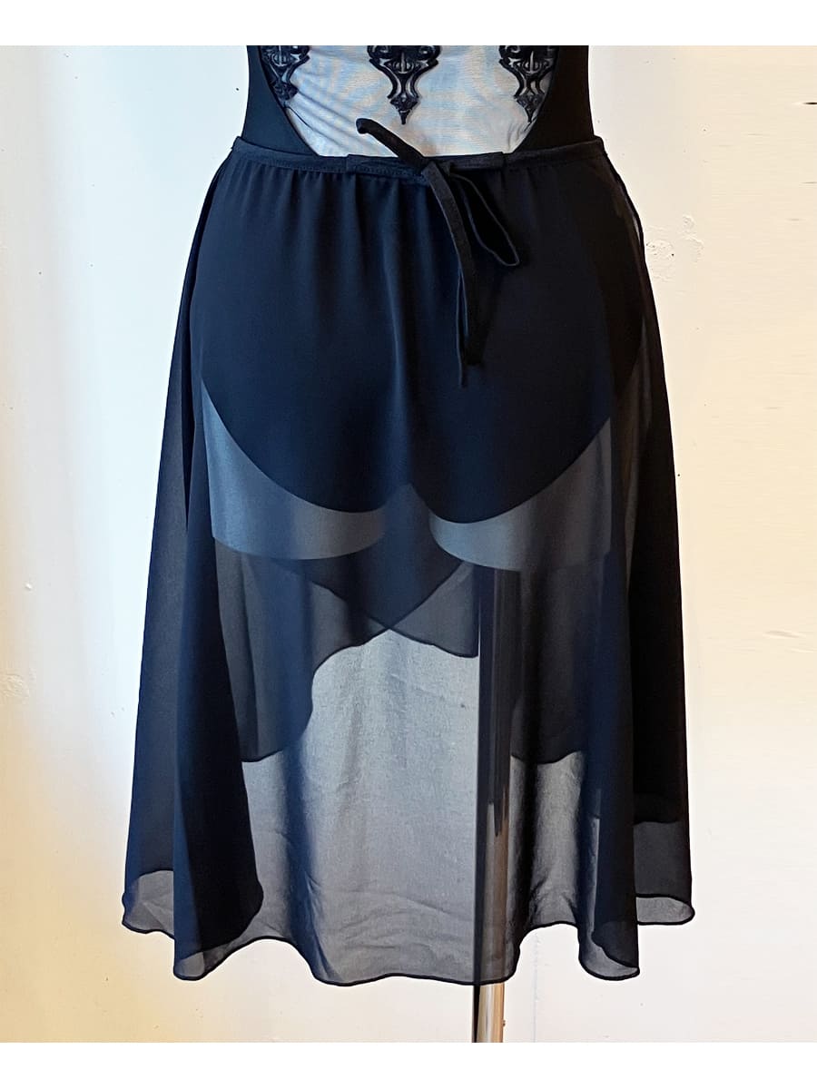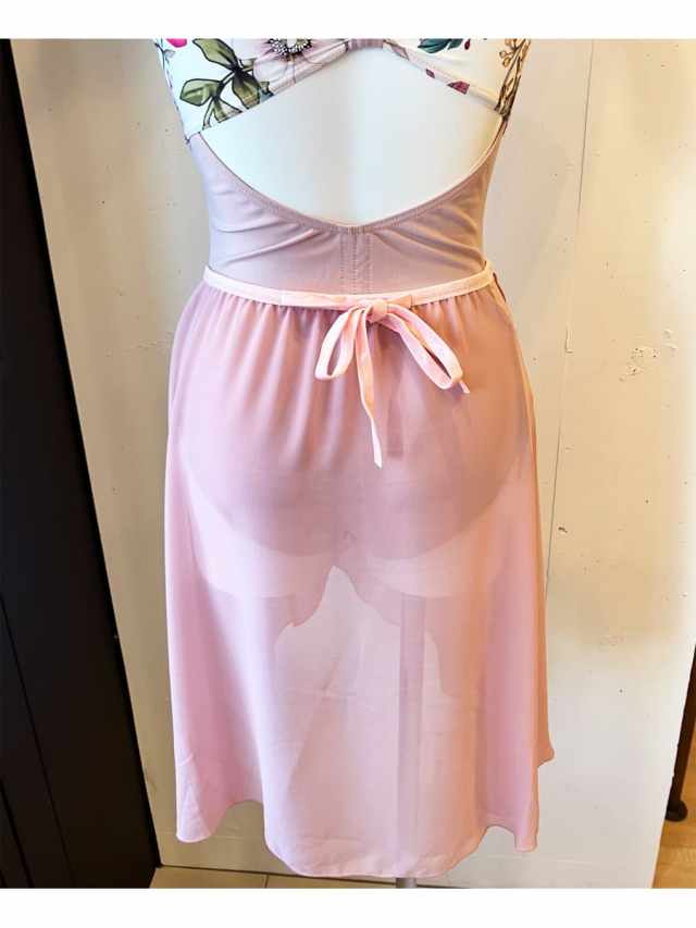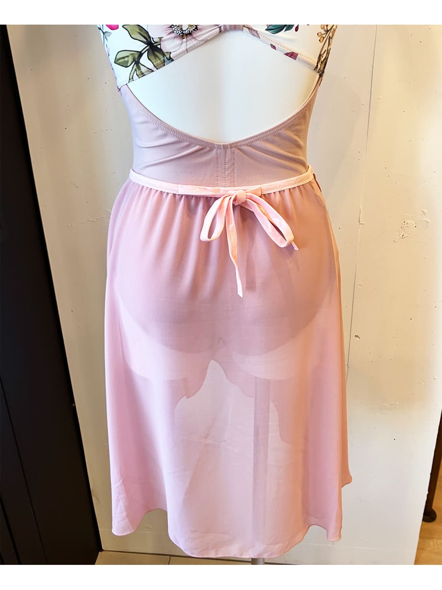 前面に透明感のあるシアーなシフォンが優美に重なり合う巻きスカート風。