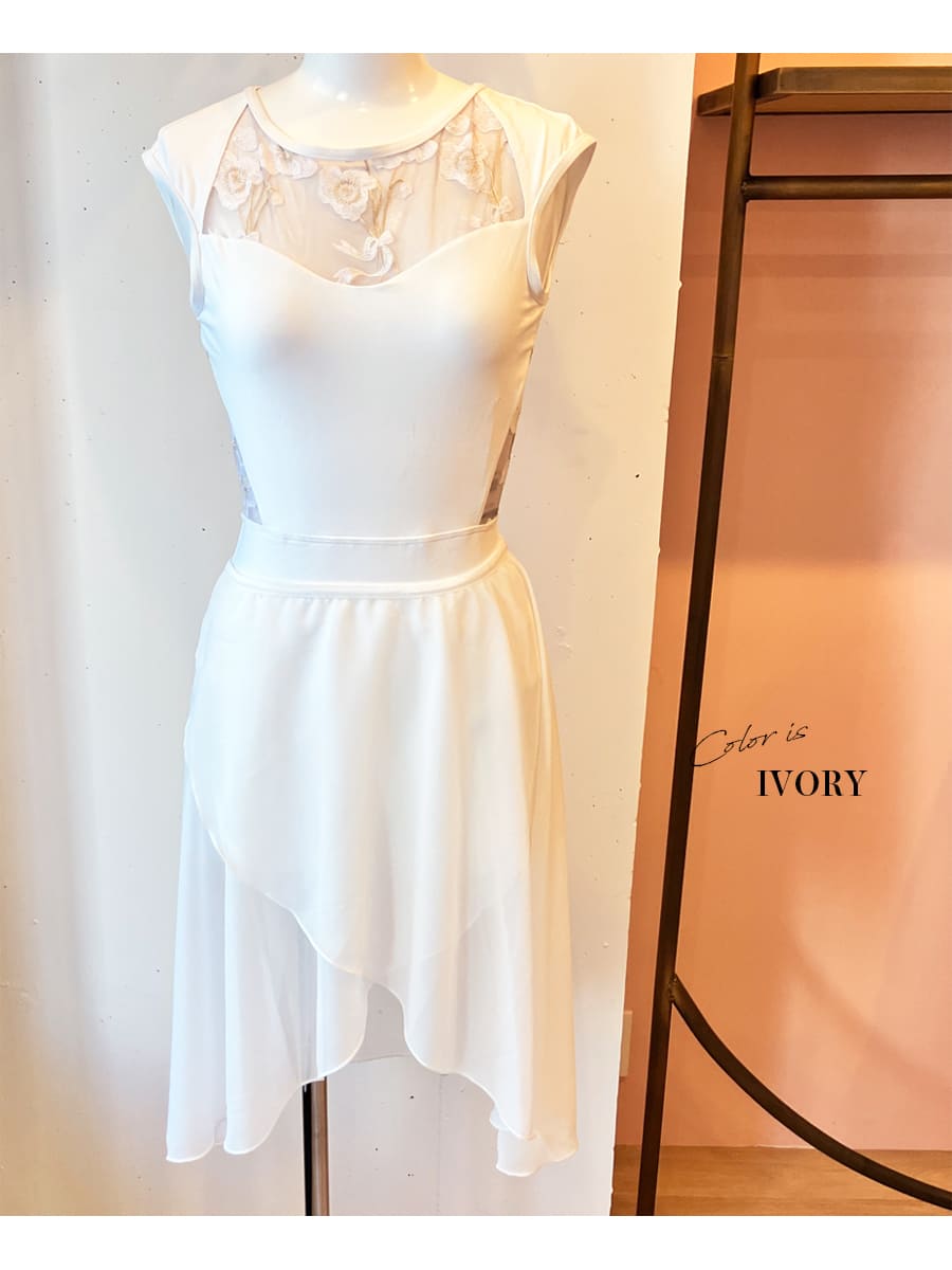 スカート後ろの方を長めにする事で立体的ですらっとしたシルエットとエレガントな佇まいを演出します。