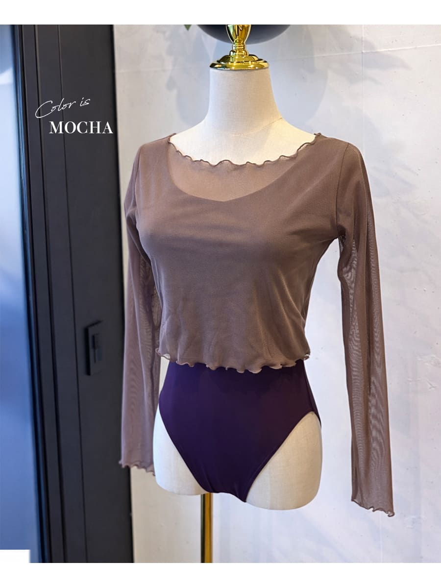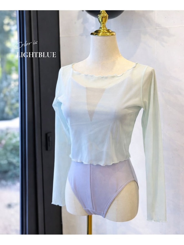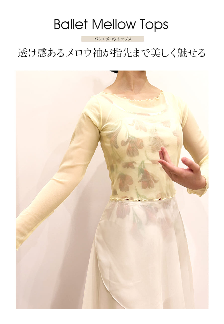 商品カテゴリ:バレエ ウォームアップ Tシャツ 長袖 メロウ シアー シンプル 綺麗 かわいい 高品質 上品 シック 高級 最高級 透け感 レッスン クラシックバレエ 社交ダンス 美シルエット 細見え アビーオリジナル abbyオリジナル