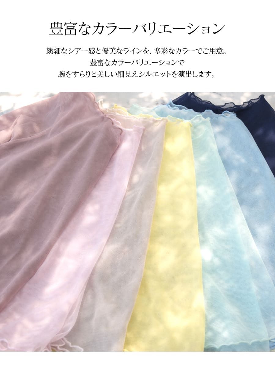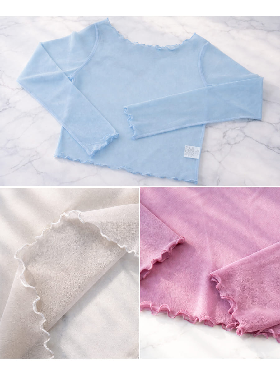 透け感のあるメロウ袖が指先まで美しく魅せるシアーメロウトップス。