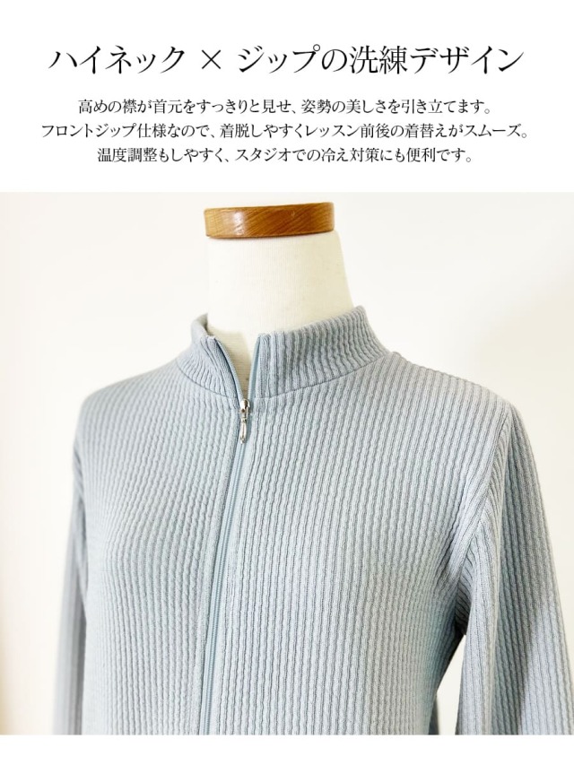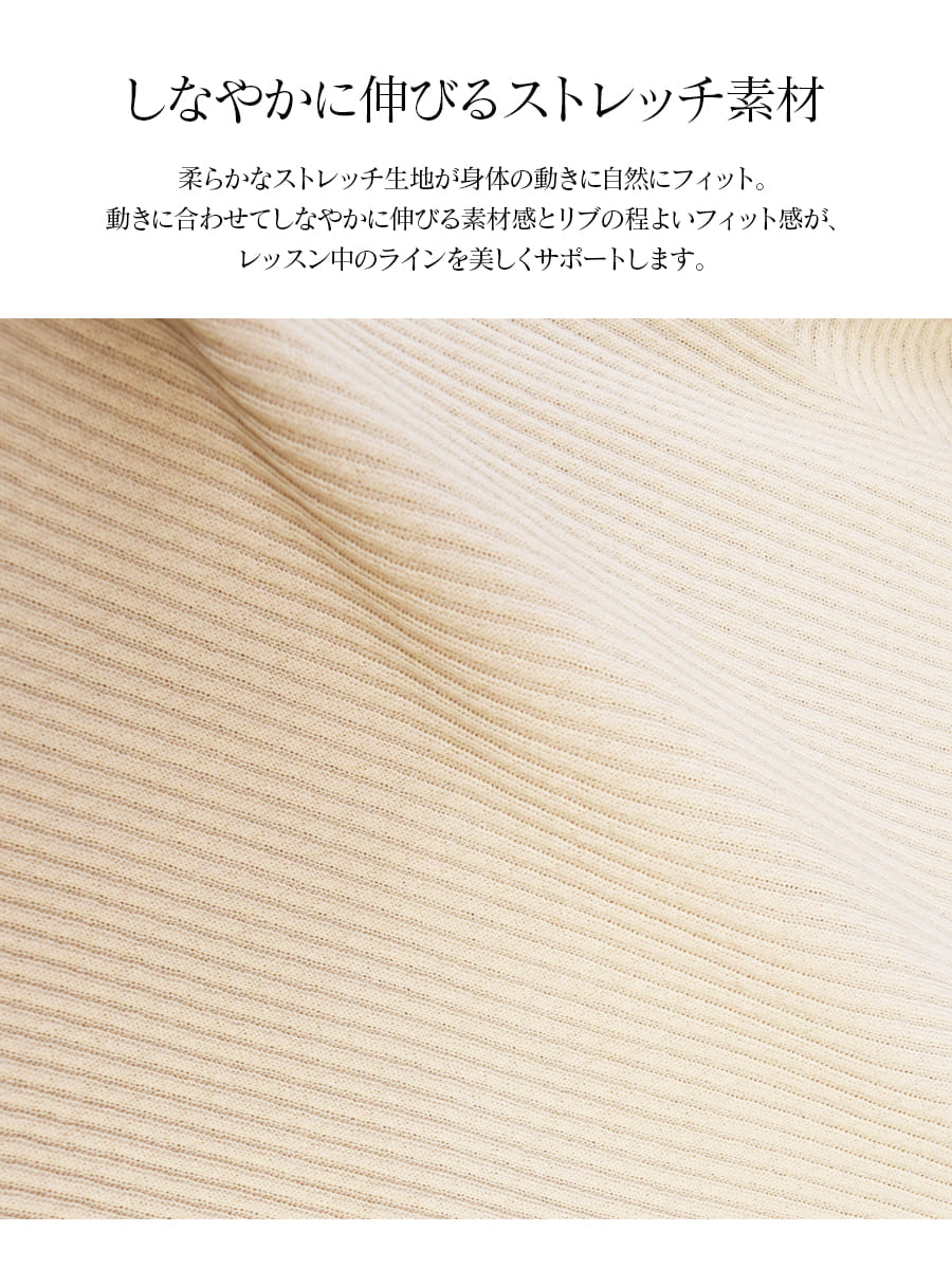 上質なストレッチ素材が、身体の流れに自然に寄り添い、レッスン中の細かな動きにもスムーズに対応します。
