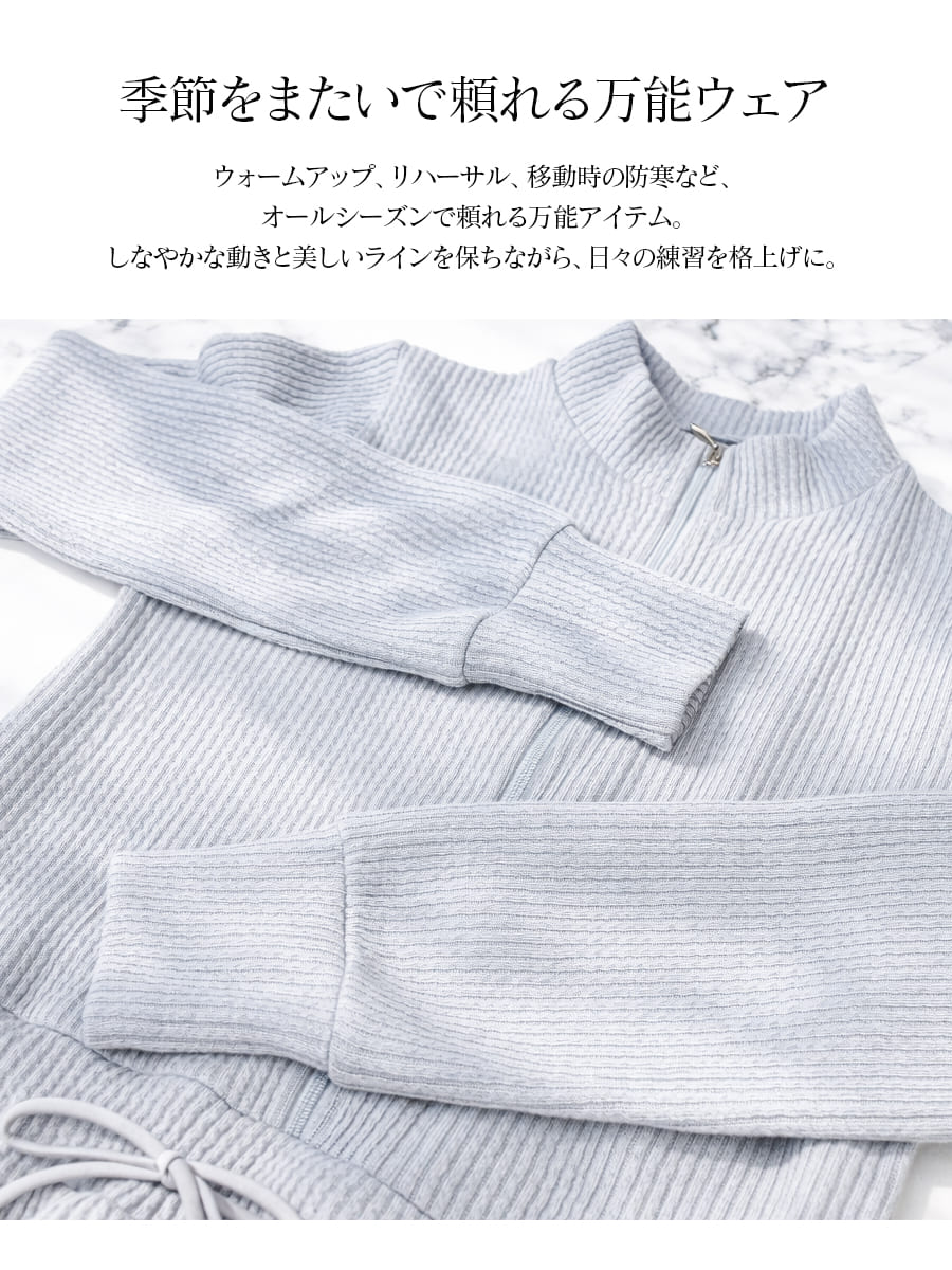 ほど良い厚みで、オールシーズン日々の練習を美しく整える、美ラインジャンプスーツです。