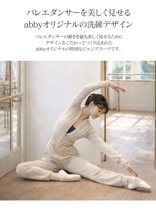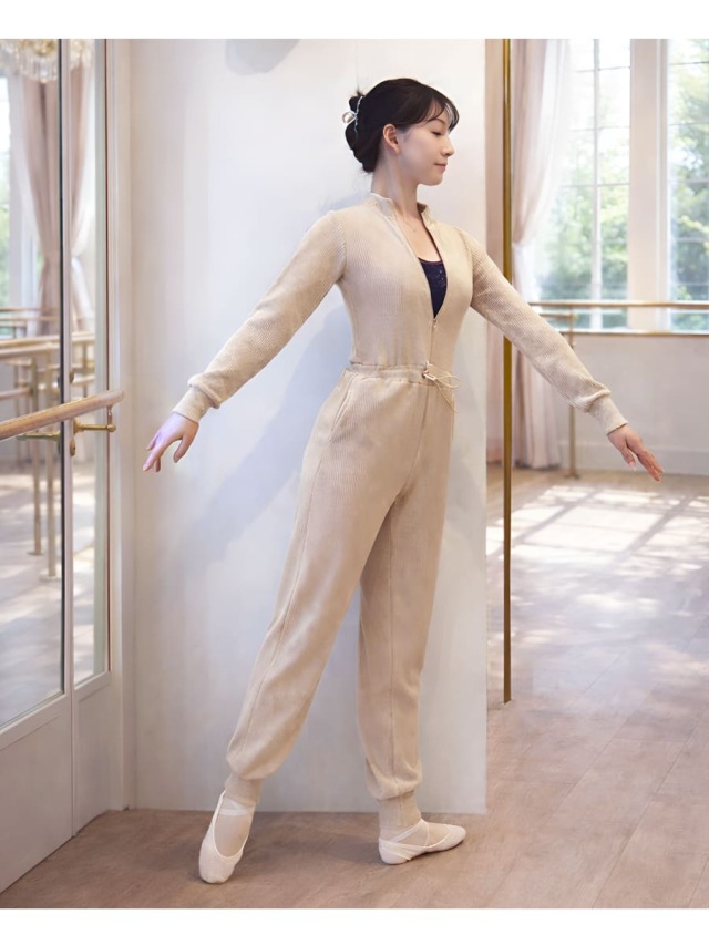 商品カテゴリ:バレエ ウォームアップ ジャンプスーツ 長袖 つなぎ リブ オールインワン シンプル 綺麗 かわいい 高品質 上品 シック 高級 最高級 レッスン クラシックバレエ 社交ダンス 美シルエット 細見え アビーオリジナル abbyオリジナル