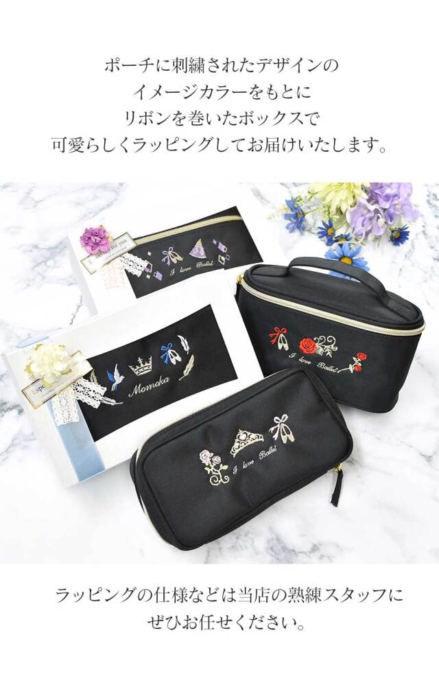 ※バニティポーチの刺繍デザインに合わせたラッピングです。ラッピングの仕様は当店にお任せください。