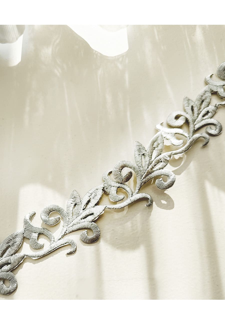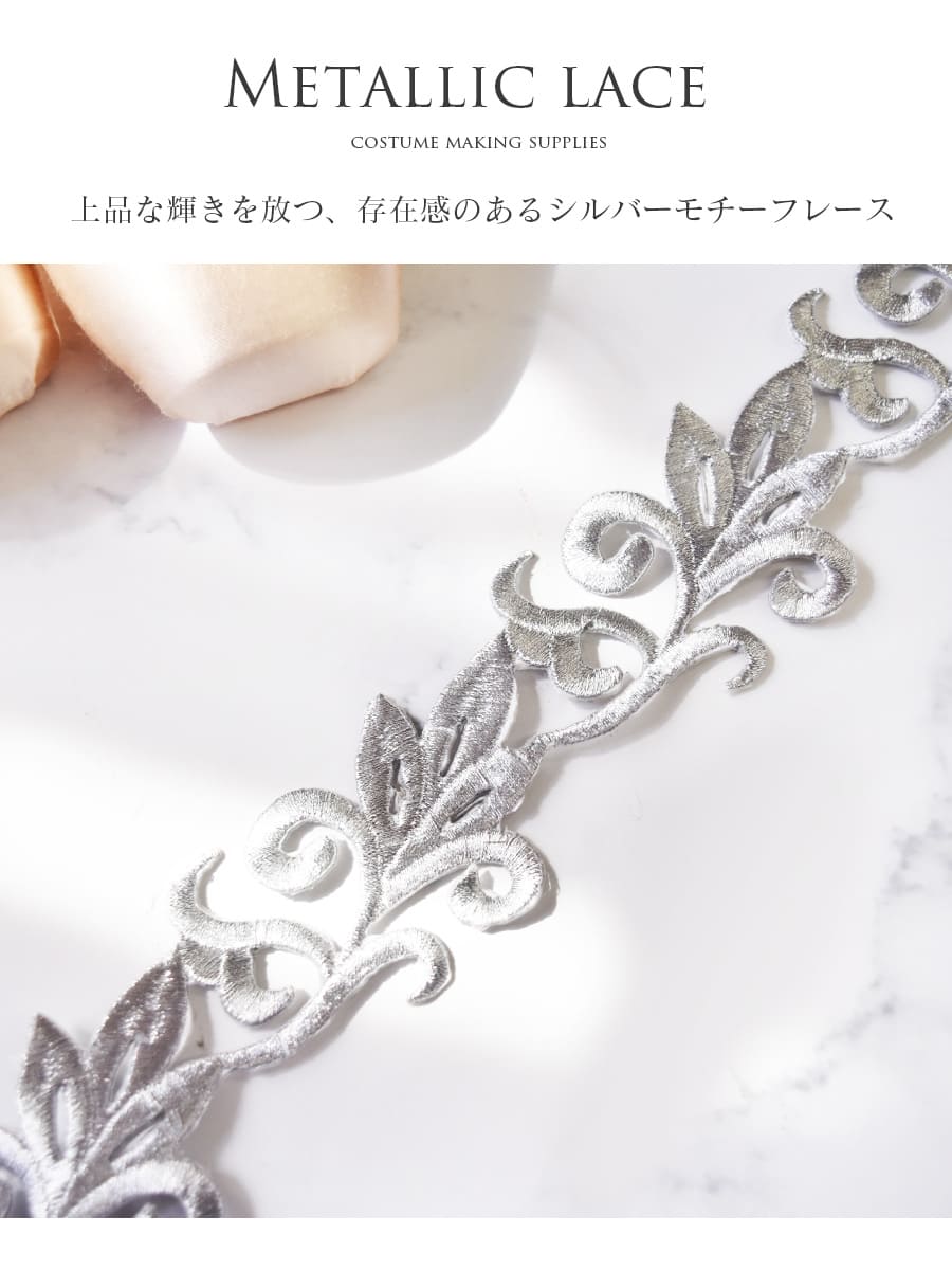 上品な輝きを放つ、存在感のあるシルバーモチーフレース。