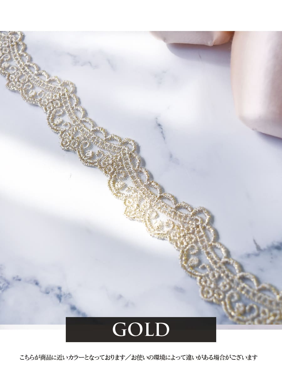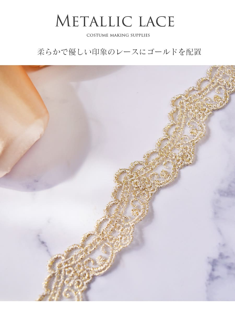 柔らかで優しい印象のレースにゴールドを配置して華やかに8デザインしたレース。