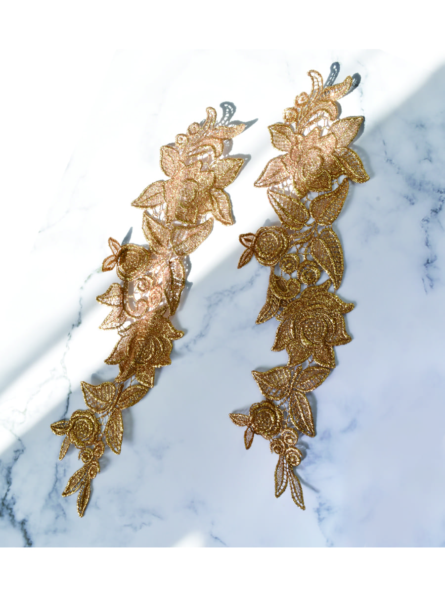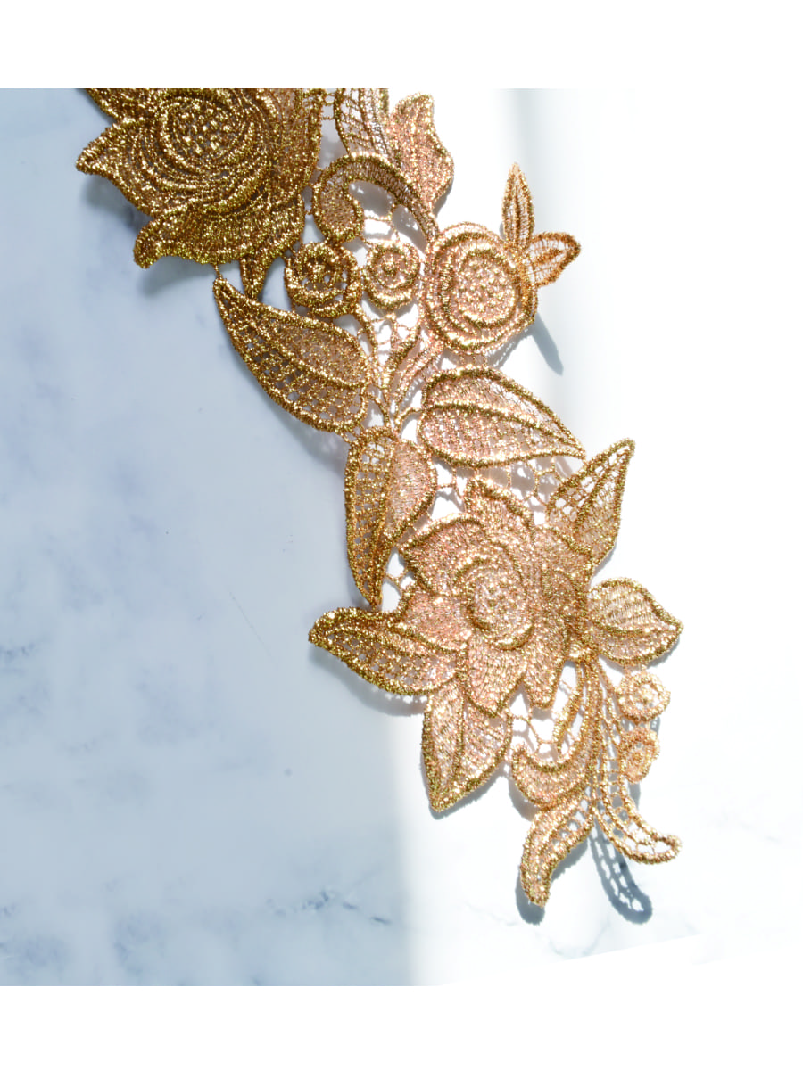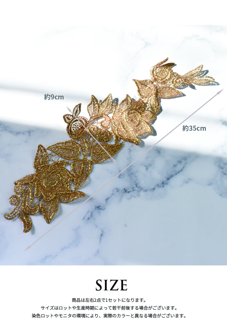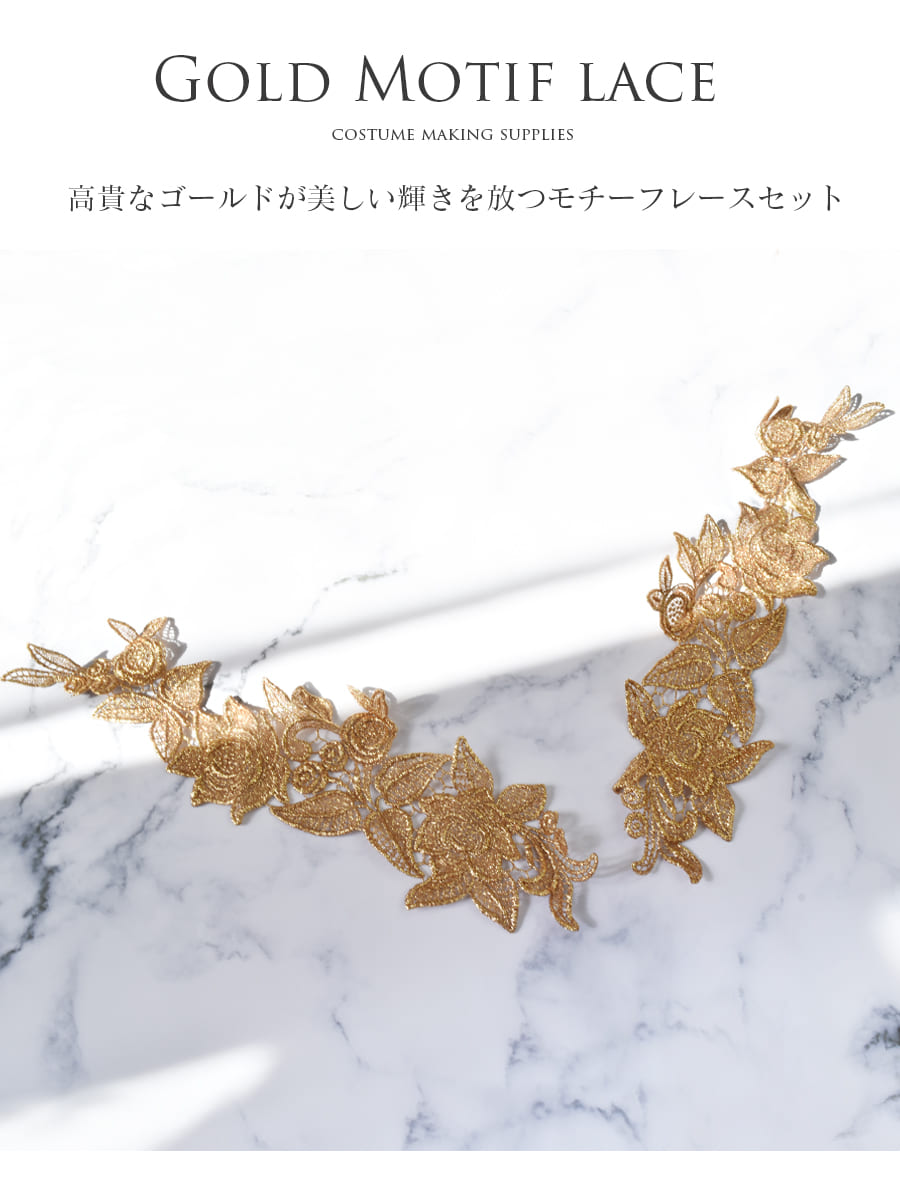 高貴なゴールドが美しい輝きを放つモチーフレースセットです。