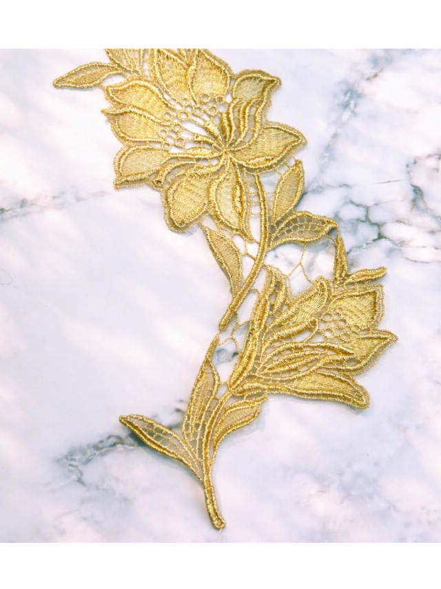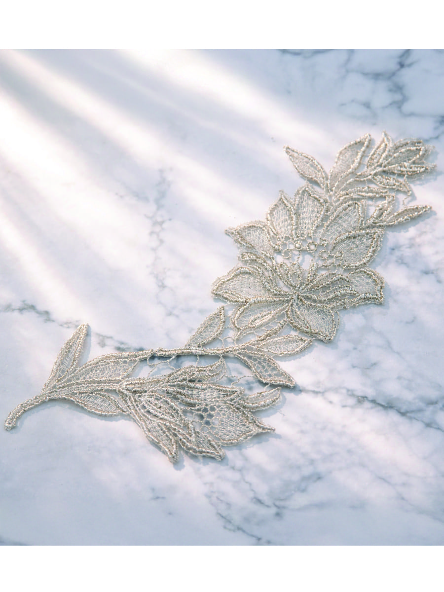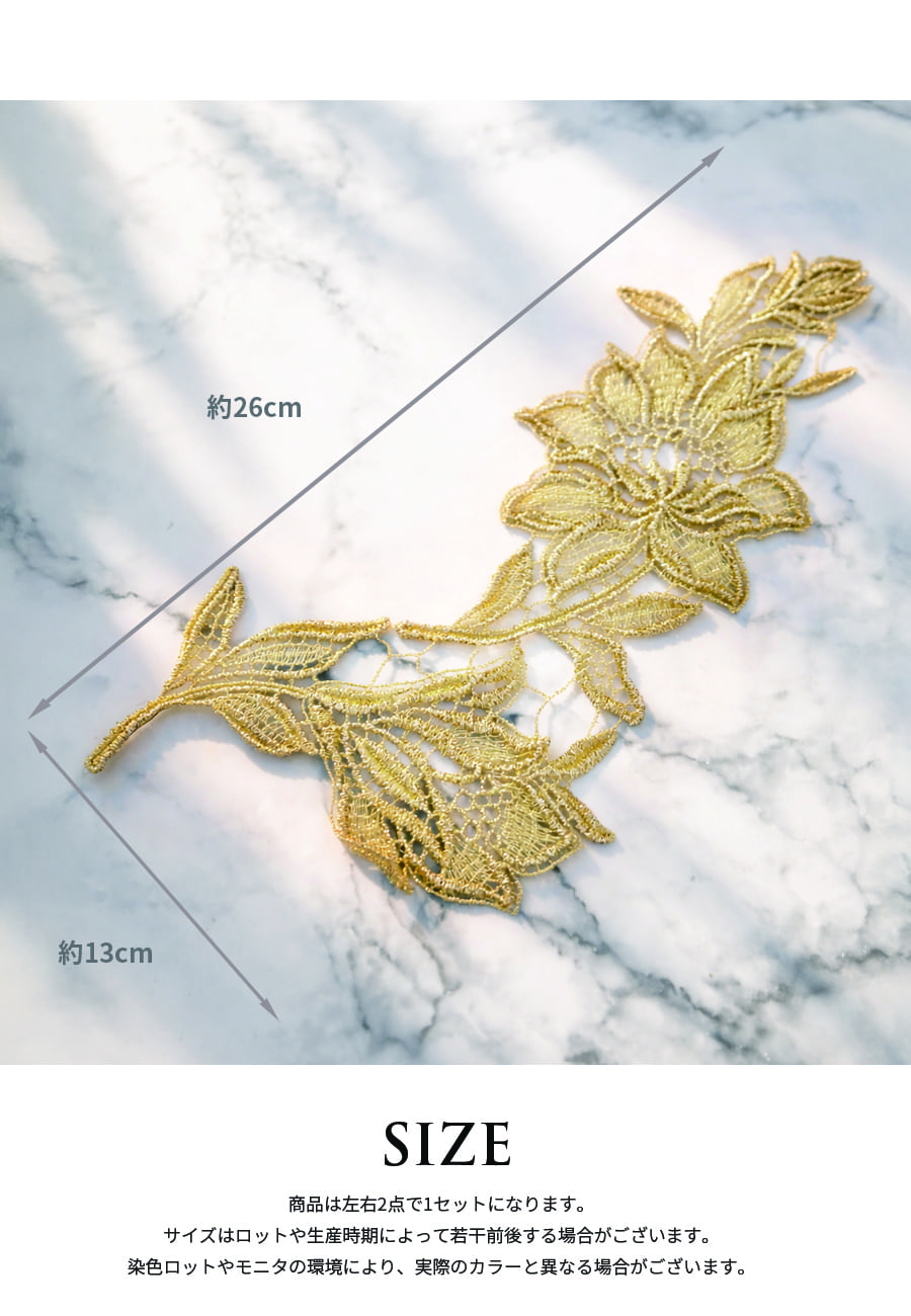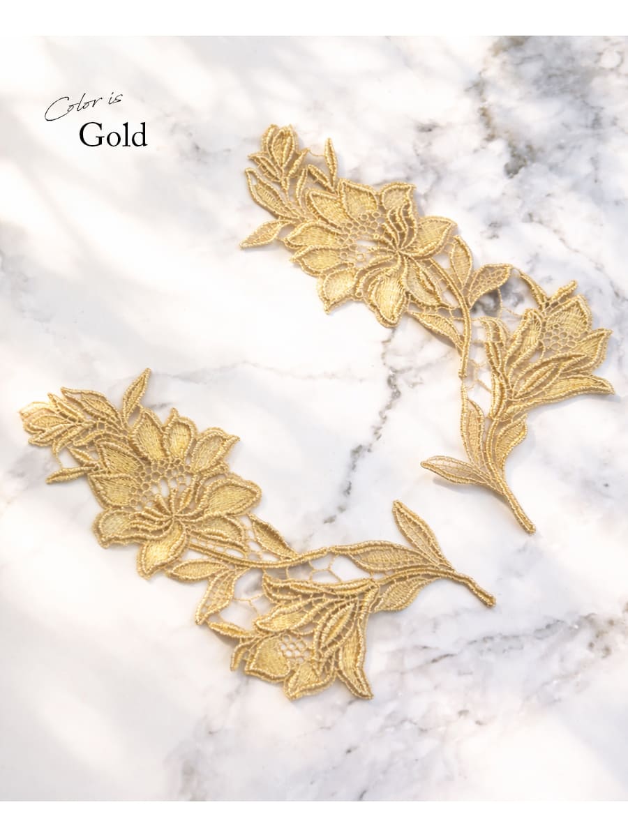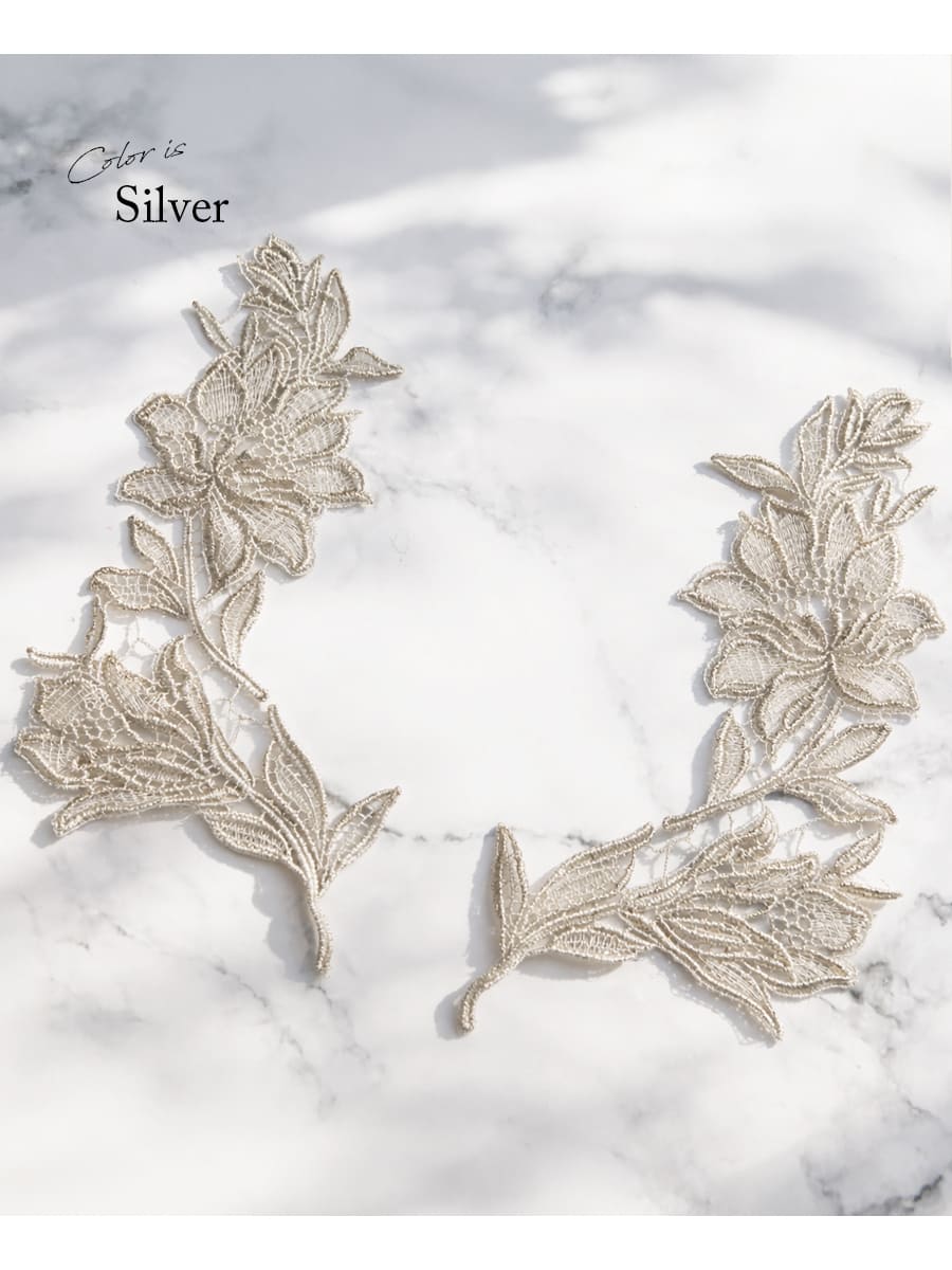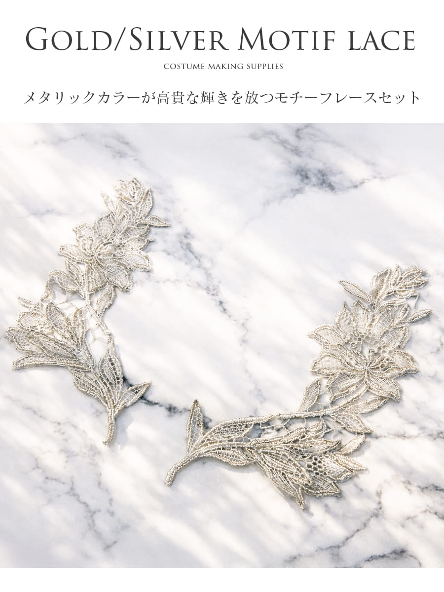 メタリックカラーが高貴な輝きを放つモチーフレースセットです。