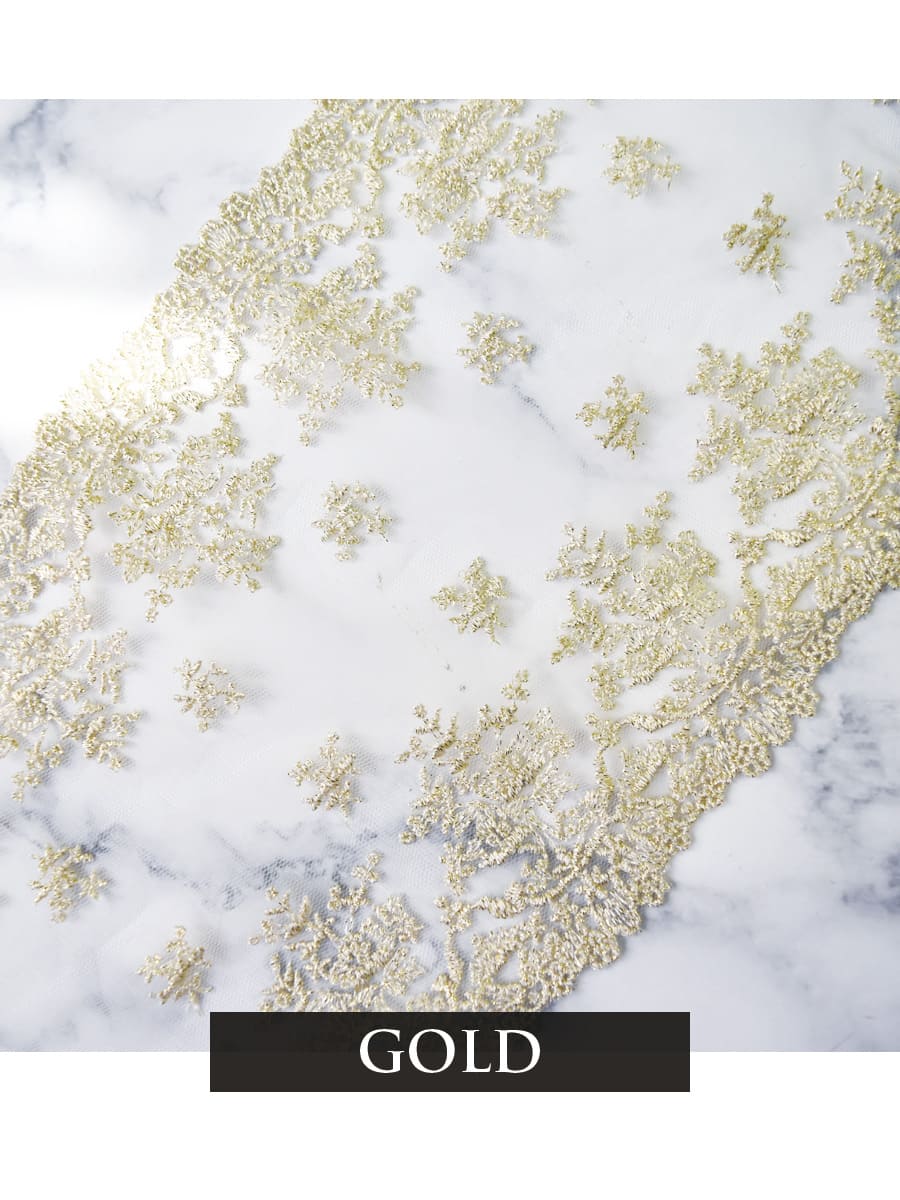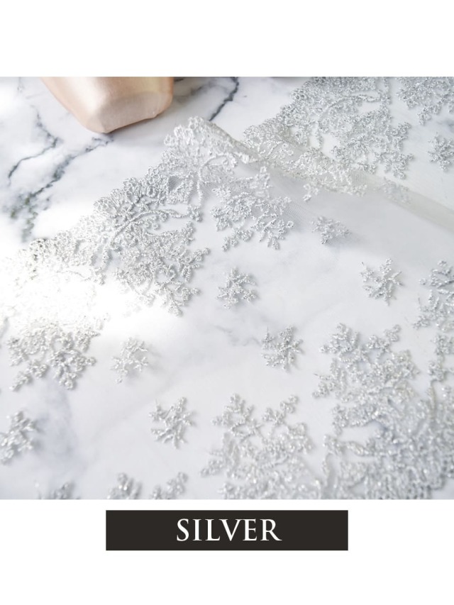 繊細で美しいちりばめるように刺繍を施した透明感のあるチュールレース。