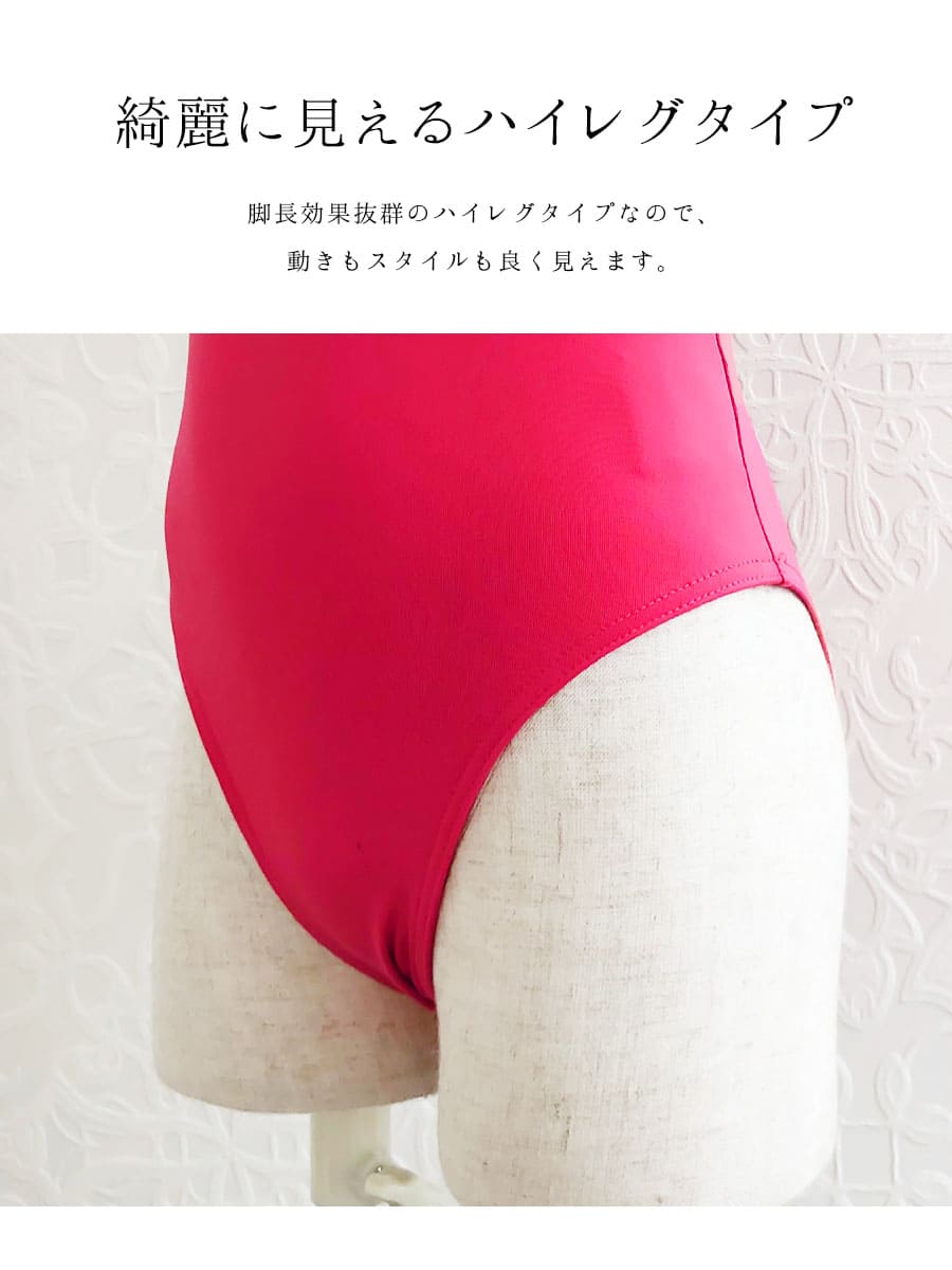 シンプルかつ定番デザイン、もちろんレッスンの動きを妨げない細部まで調整したデザインと、伸びが良く、優しい肌触りの素材で仕上げました。裏地ありタイプ、脚長効果の高いハイレグタイプです。サイズもキッズからジュニアサイズまで揃えました。