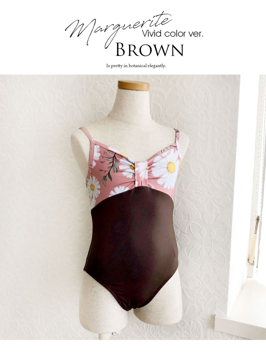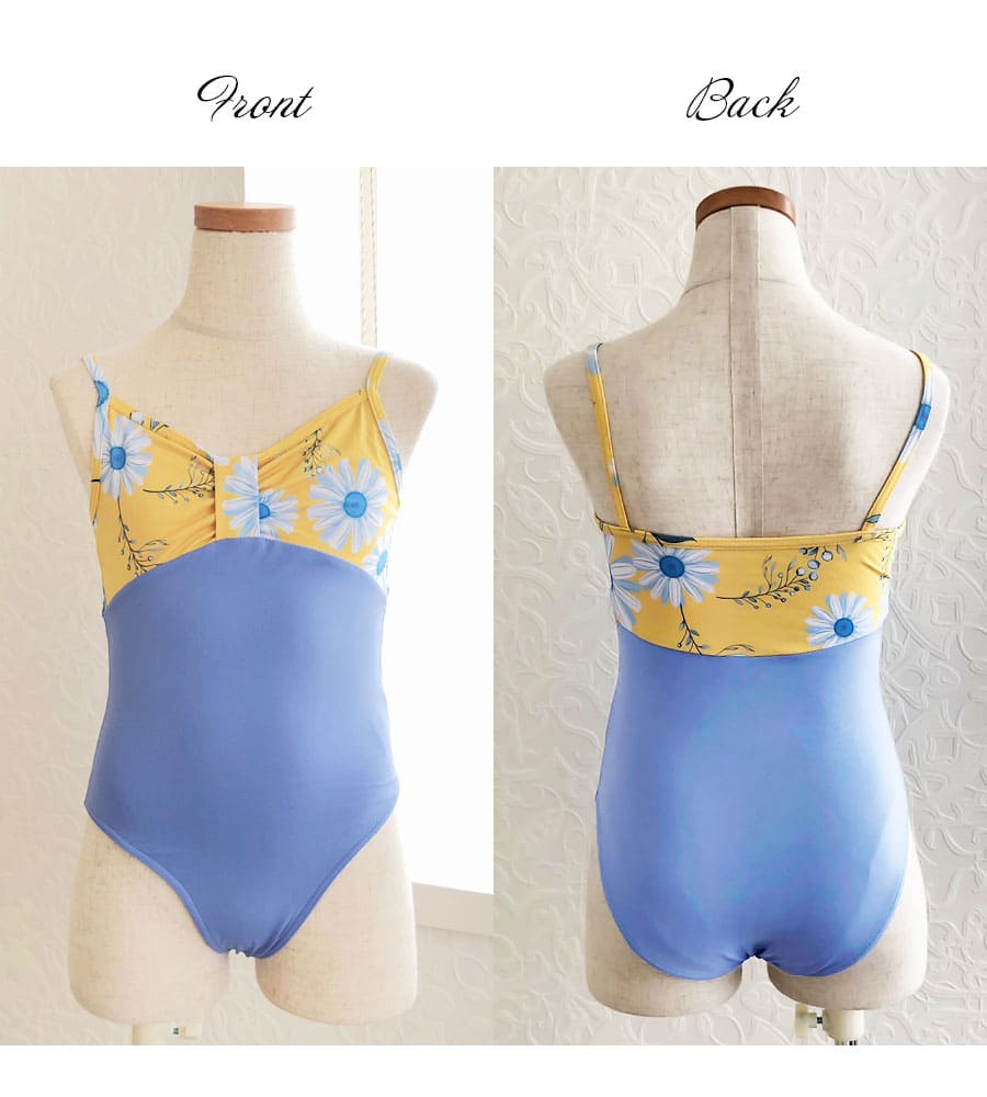 日々のレッスンがもっと楽しくなる、上品で愛らしいマーガレット柄素材を使ったキッズ・ジュニアレオタードです。