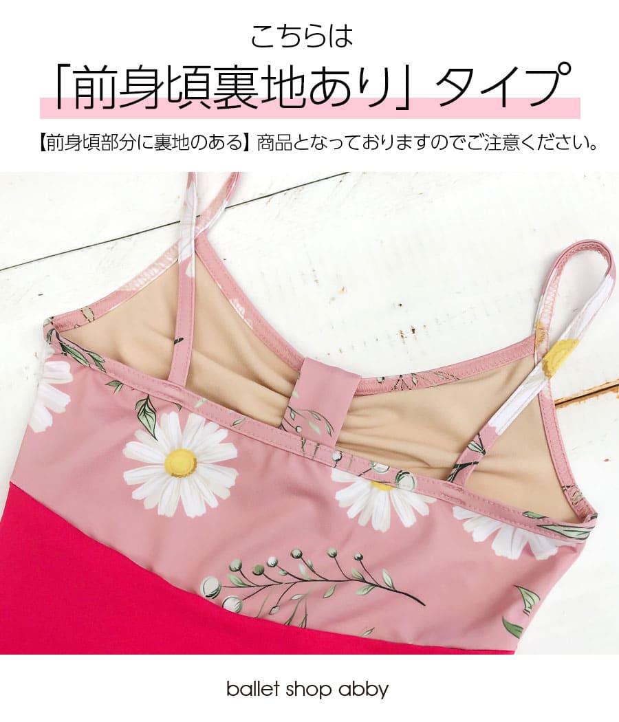 ballet shop abby【バレーショップアビー】オリジナル!美脚&スタイル良く見えるハイレグタイプのレオタード!伸びの良いしなやかな素材を使った、リボンデザイン&愛らしいマーガレット柄の上品で可愛いレオタードです。キッズ&ジュニア対応、裏地付き。