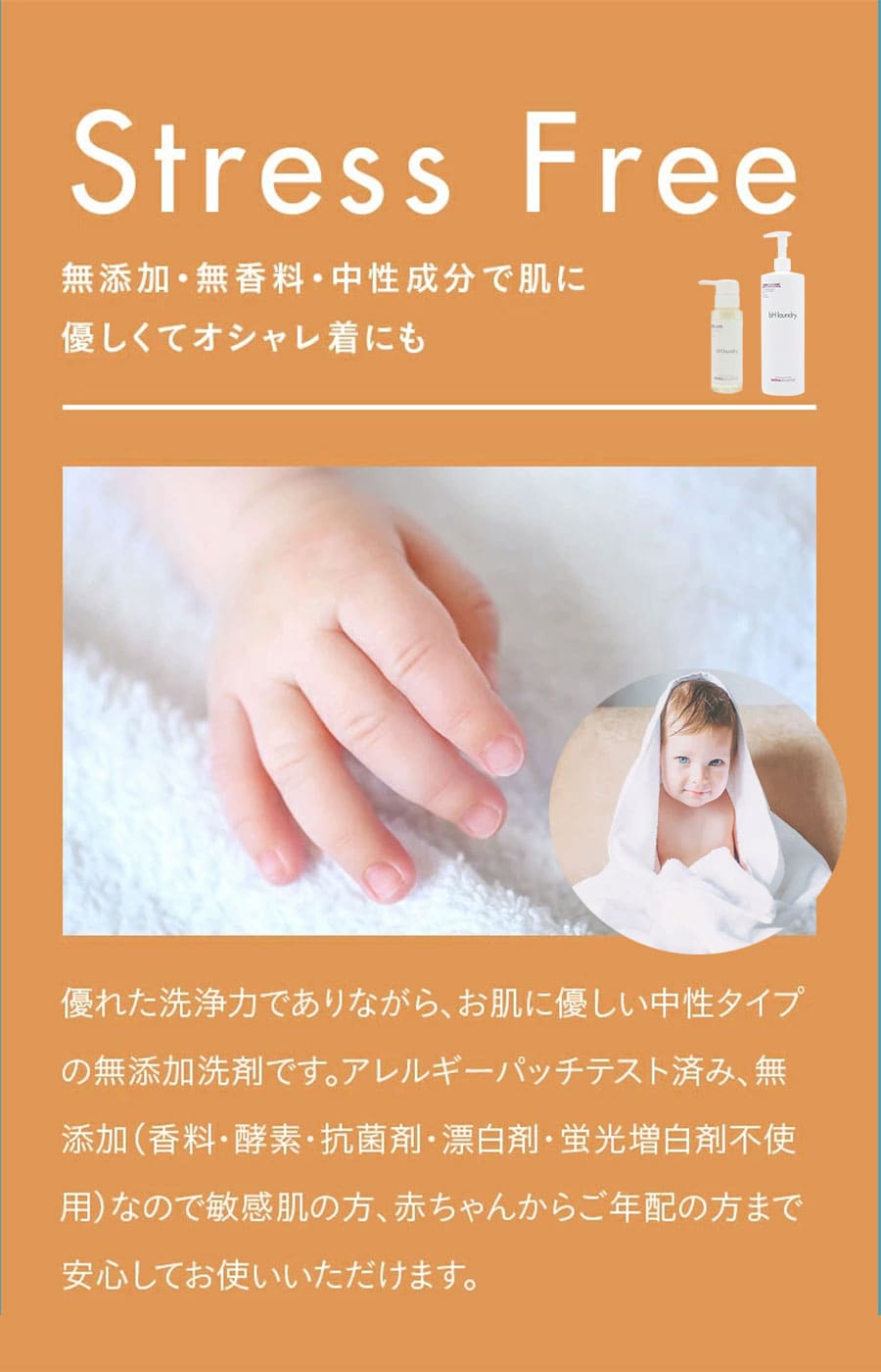 お肌や衣類に優しい、カリフォルニア生まれの無添加ランドリー洗剤 。