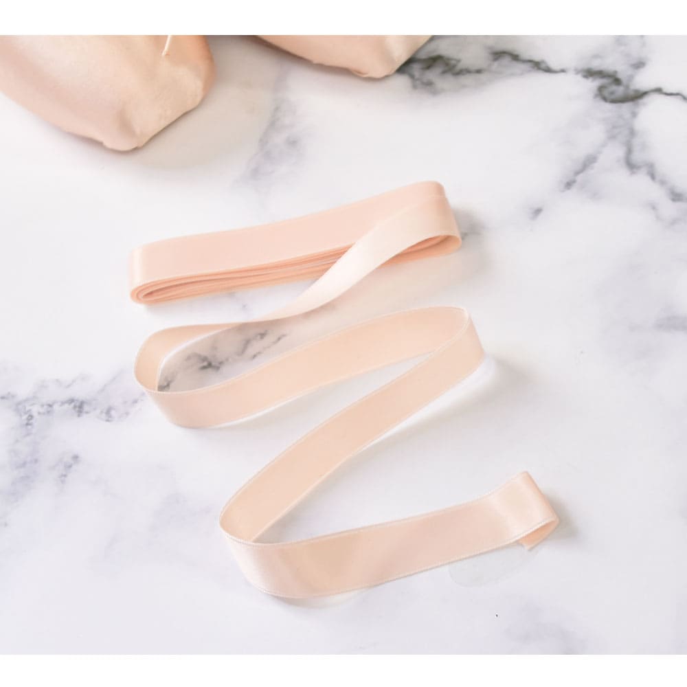 ブロックならではのつややかなサテンピンクのリボンです。舞台上でもタイツになじみ目立ちません。