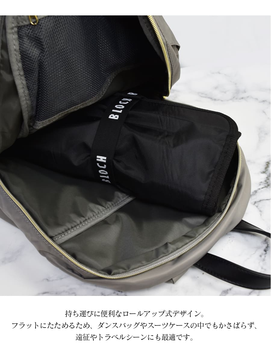 各コンパートメントには、ポワントシューズ型のジッパーをあしらい、Blochらしいこだわりも感じられるデザインです。