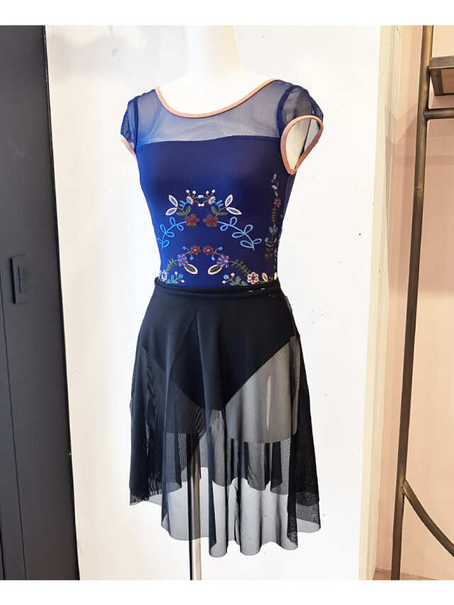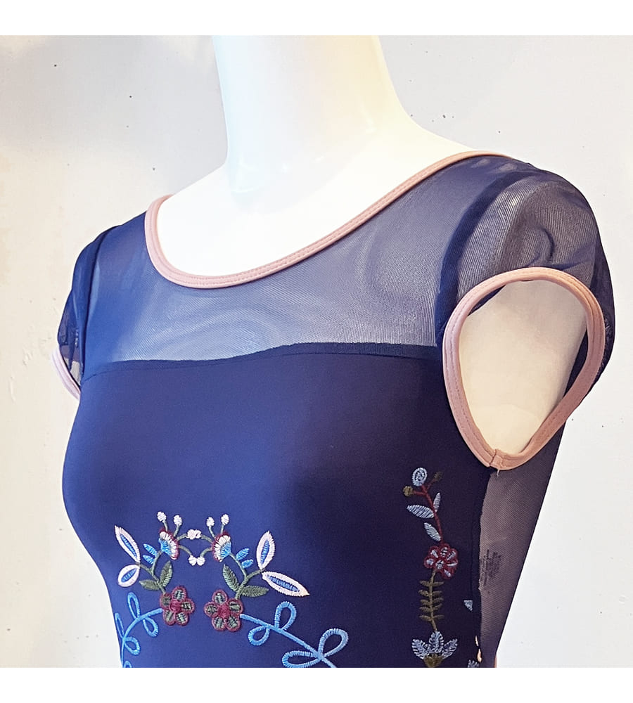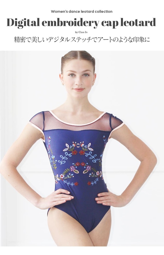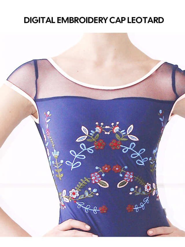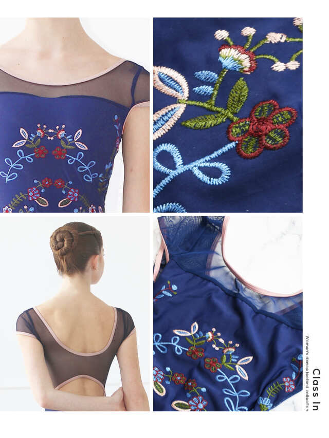高精度で美しい刺繍をあしらったアートのような印象を与えるレオタード。