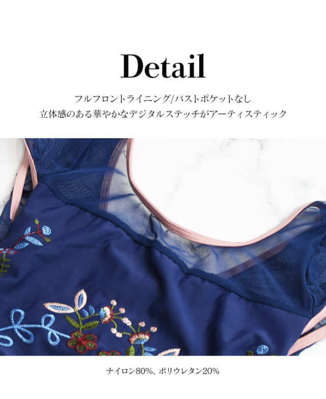 上品で深く落ち着いたブルーに精密なデジタルステッチの立体感のある華やかな刺繍が思わず目を惹く一着。