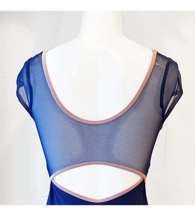 肩〜背中部分のメッシュのシアーな質感が、ダンサーの身体を美しく、しなやかに魅せてくれます。