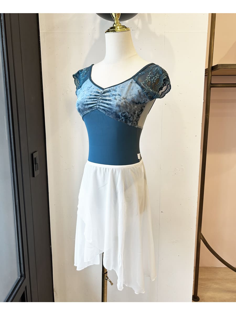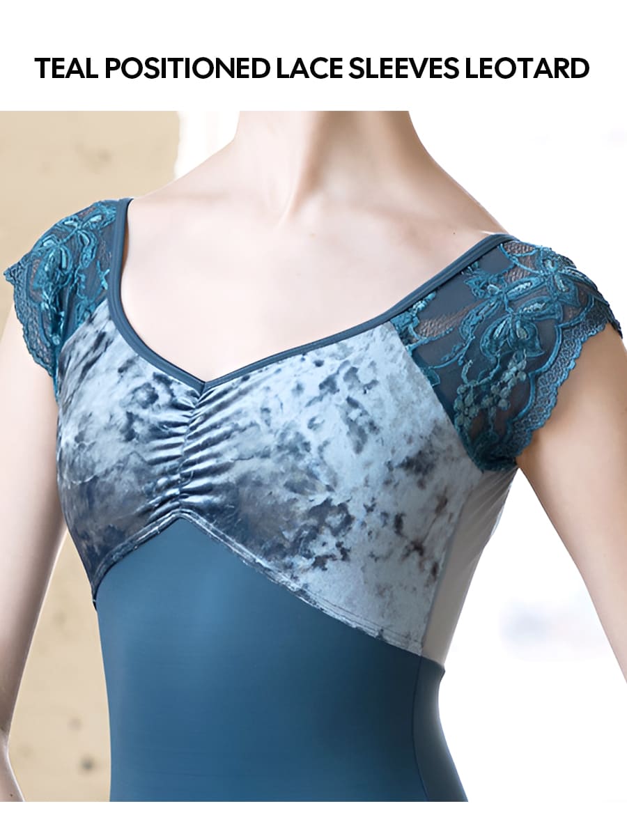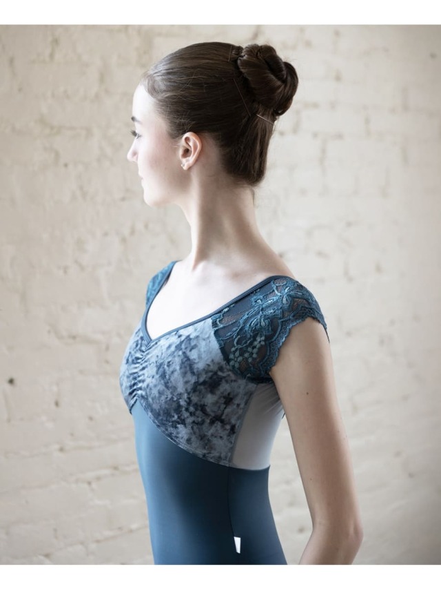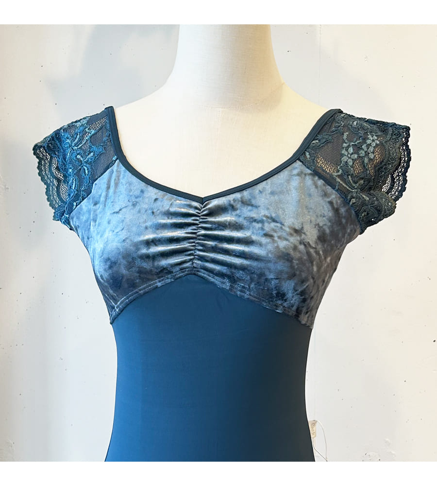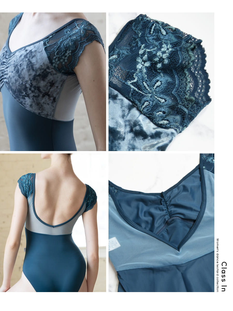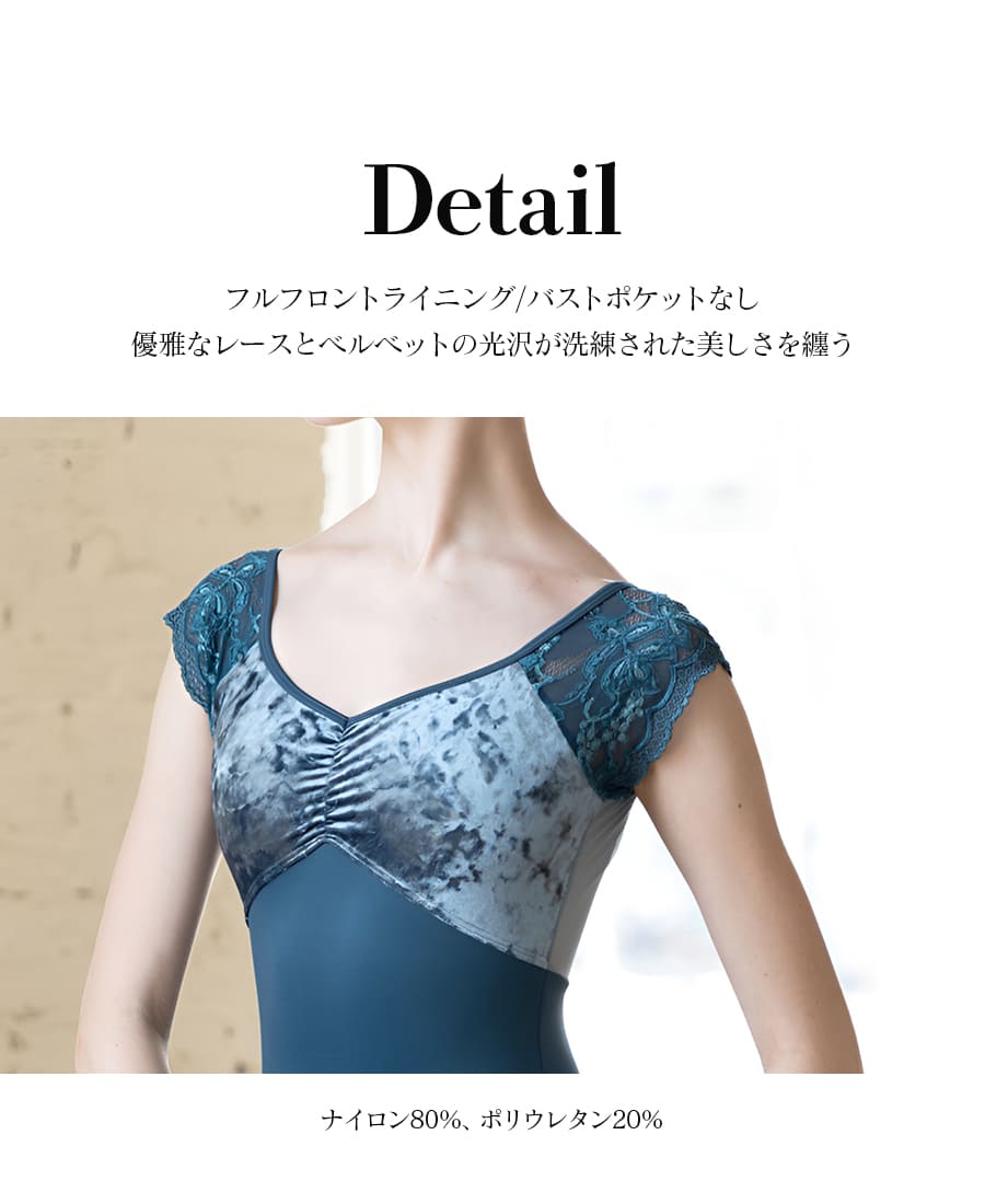 優雅なレースとベルベットの光沢が洗練された美しさを纏うレオタード。