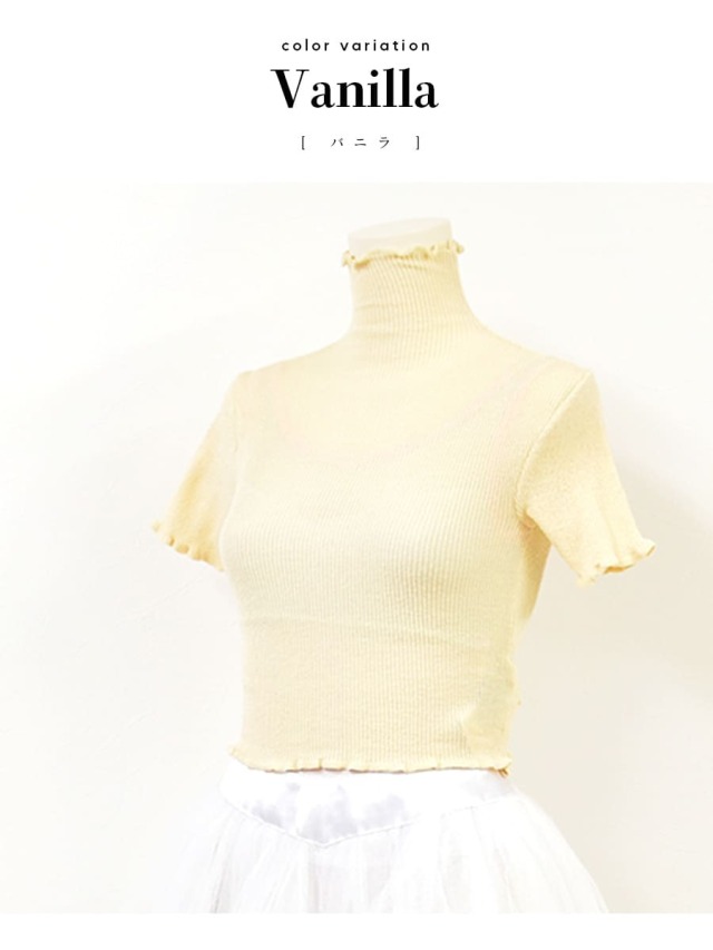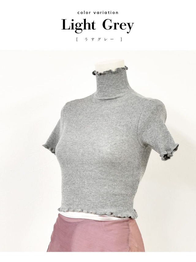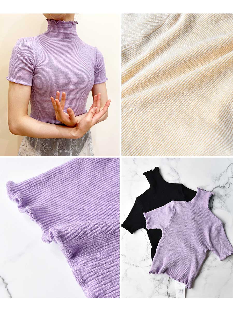 Donna Prima(ドナプリマ)コットン薄手トップス(タートル・半袖・丈短)