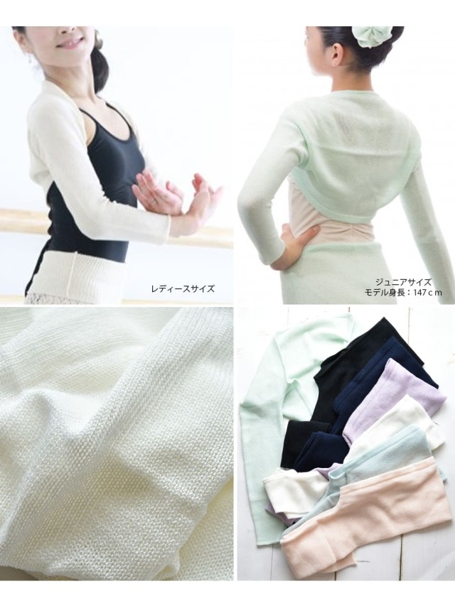 長時間のレッスンでもしっかりとあたため腕や背中部分をやさしく包み込みます。もちろん、冷えからも守ってくれる定番アイテム。こちらは同色のショルダーウォーマーとセットでお使いいただけます。