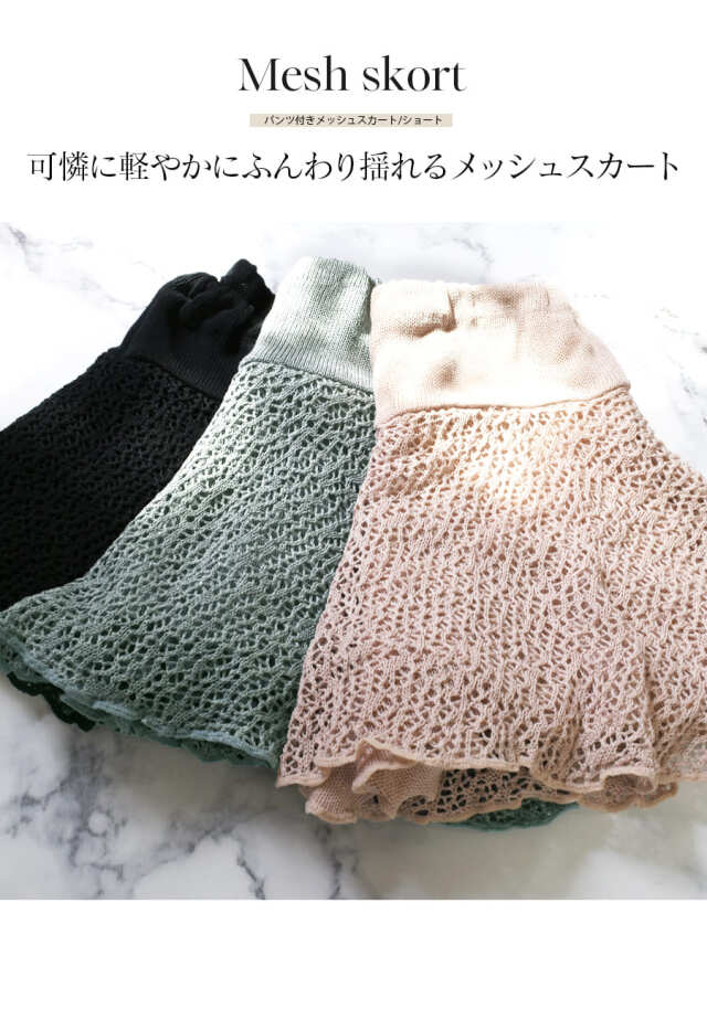 Donna Prima(ドナプリマ)パンツ付きメッシュスカート・ショート丈(オールシーズン)