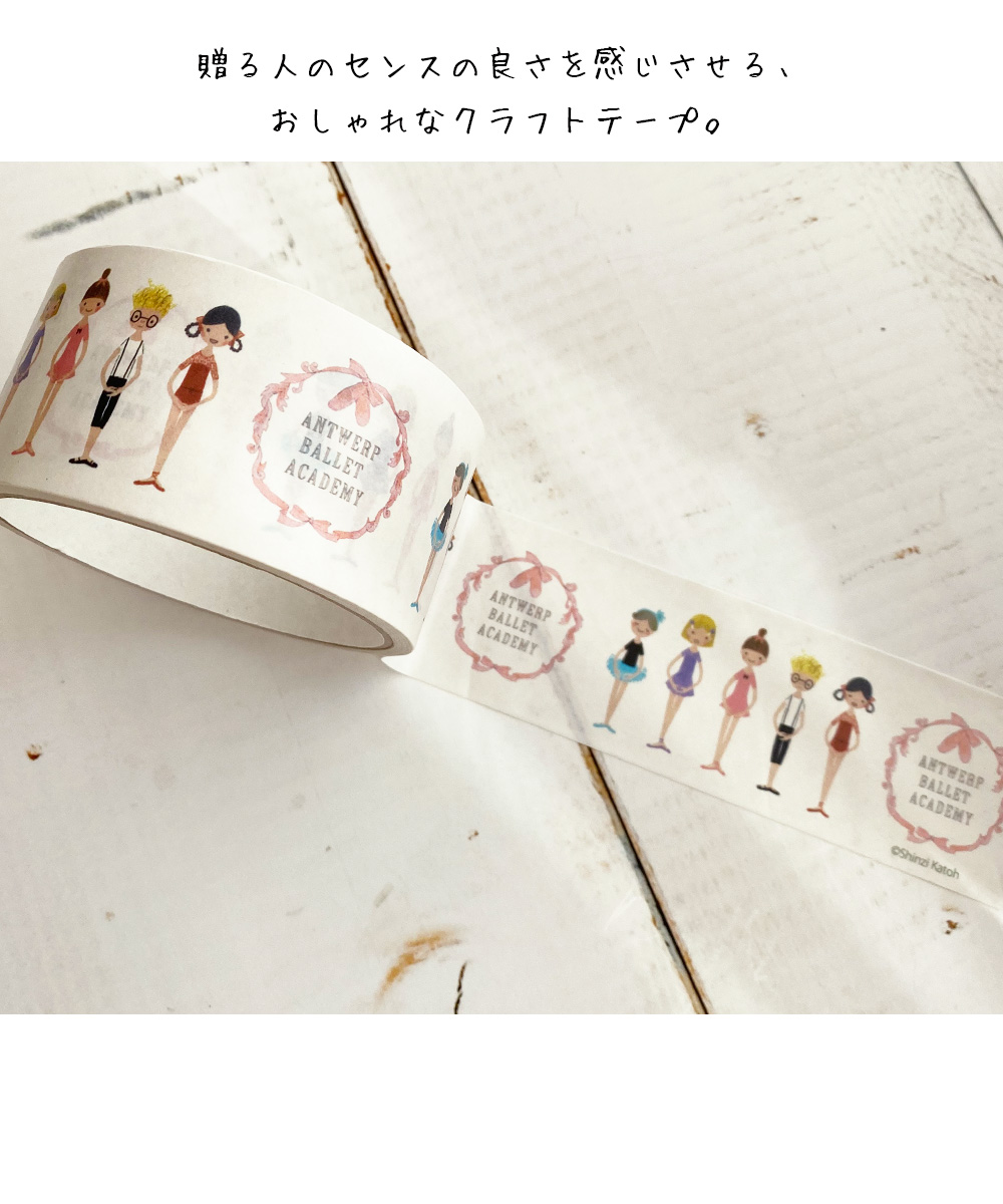 とても可愛いバレエ柄のクラフトテープ。しっかり粘着力で梱包に適しています。