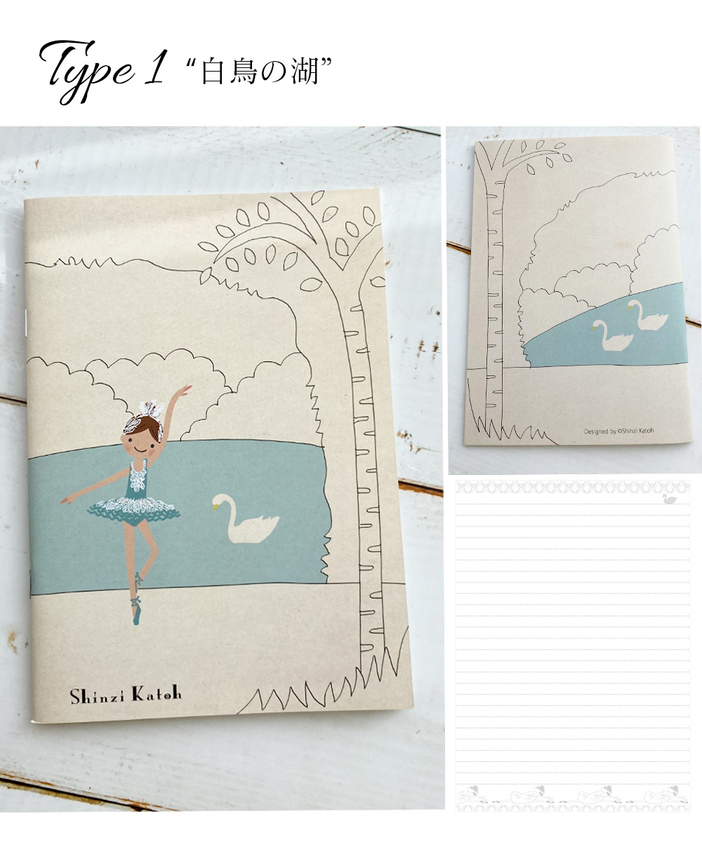 可愛くておしゃれで使いやすいA5サイズバレエ柄ノートブック。”Shinzi Katoh”デザイン。