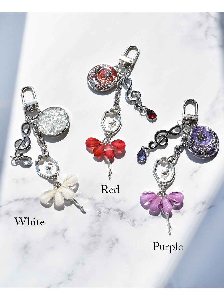 キラキラビジューたっぷり!透明感のある花びらのようなスカートが可愛いバレリーナキーホルダーが新登場!