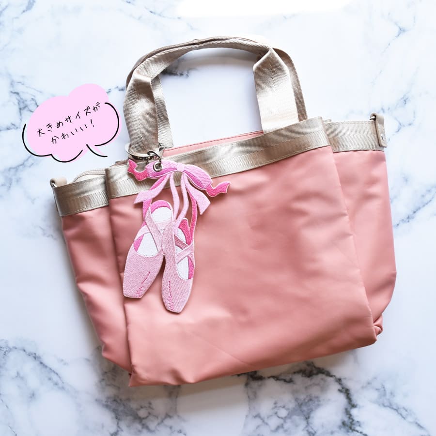 バレエショップアビーオリジナル 【ビッグサイズ刺繍バッグチャーム】 光沢のある美しい刺繍面のバッグチャーム。 大きめサイズでとても印象的なアイテムです。