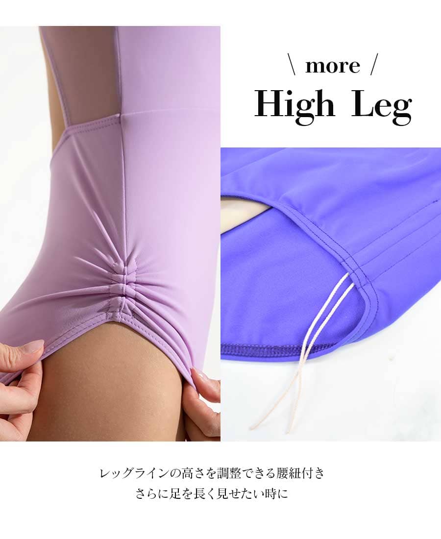 レッグラインの高さを調整できる腰紐。大きなキーホールバック。