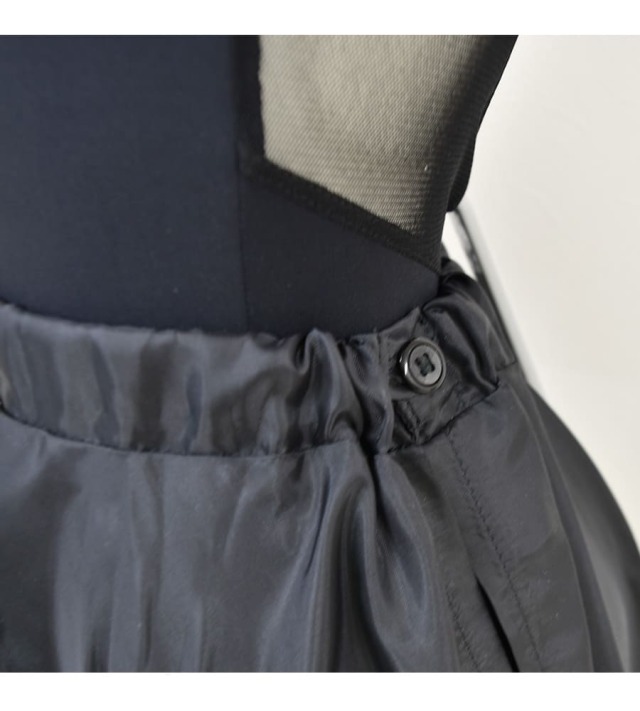 ウエスト部分はゴム製、ボタンで留めるタイプ。