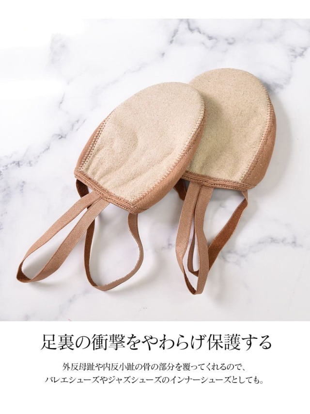 外反母趾や内反小趾の骨の部分を覆ってくれるので、バレエ シューズやジャズシューズのインナーシューズとしても活躍間違いなし。