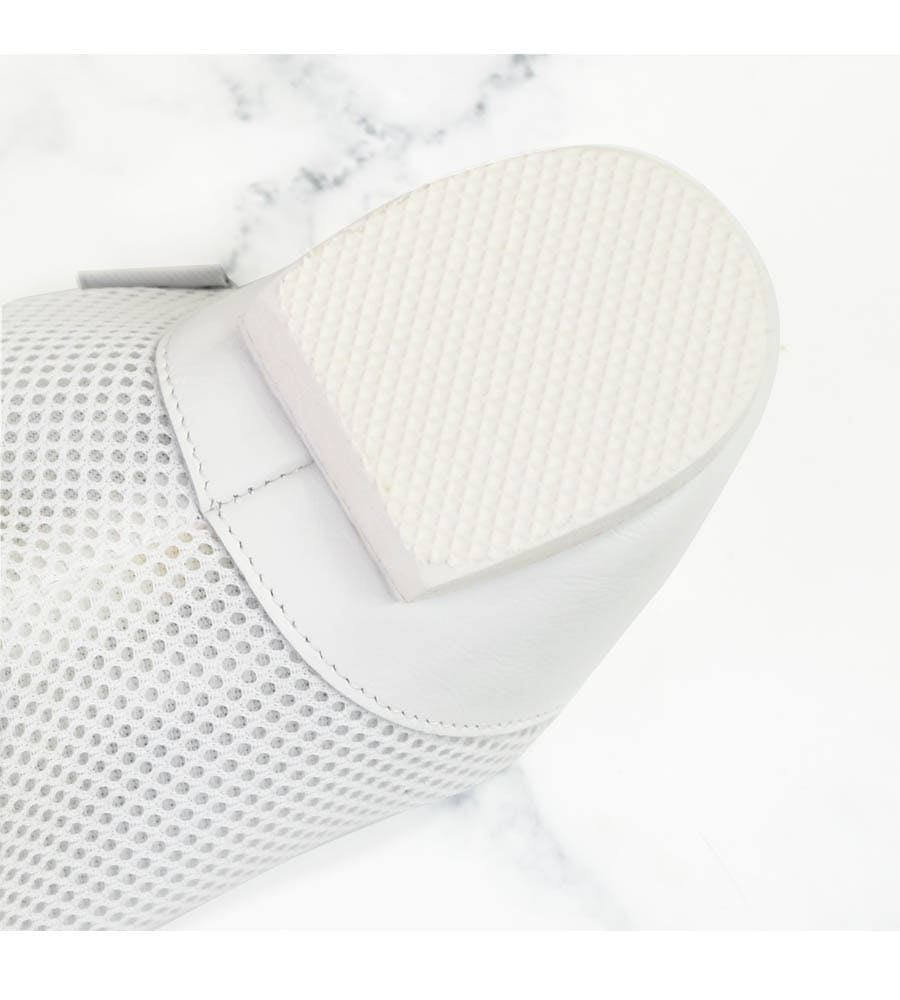 最新モデルの網状のメッシュは通気性抜群で、型崩れを防ぐので長時間のレッスンにも最適。