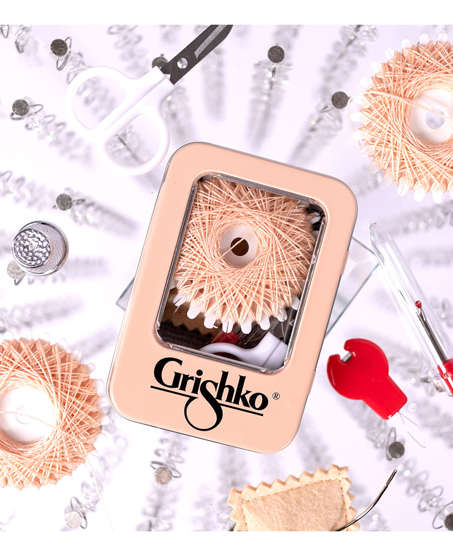 思わずバッグに入れておきたくなる グリシコのロゴがおしゃれなバレエデザインの缶ケースに入ったソーイングセットです。