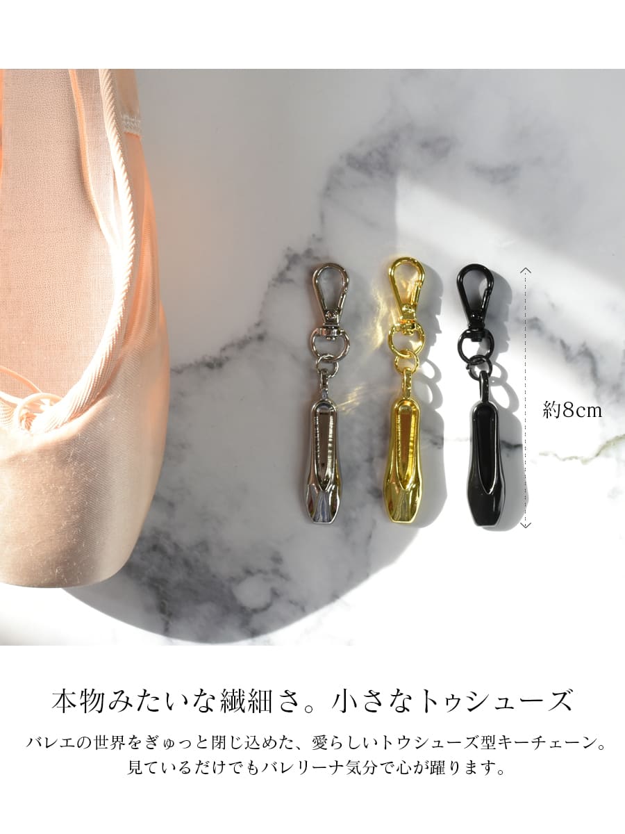 繊細なフォルムが思わず目を惹く上品で愛らしいトウシューズキーチェーン。