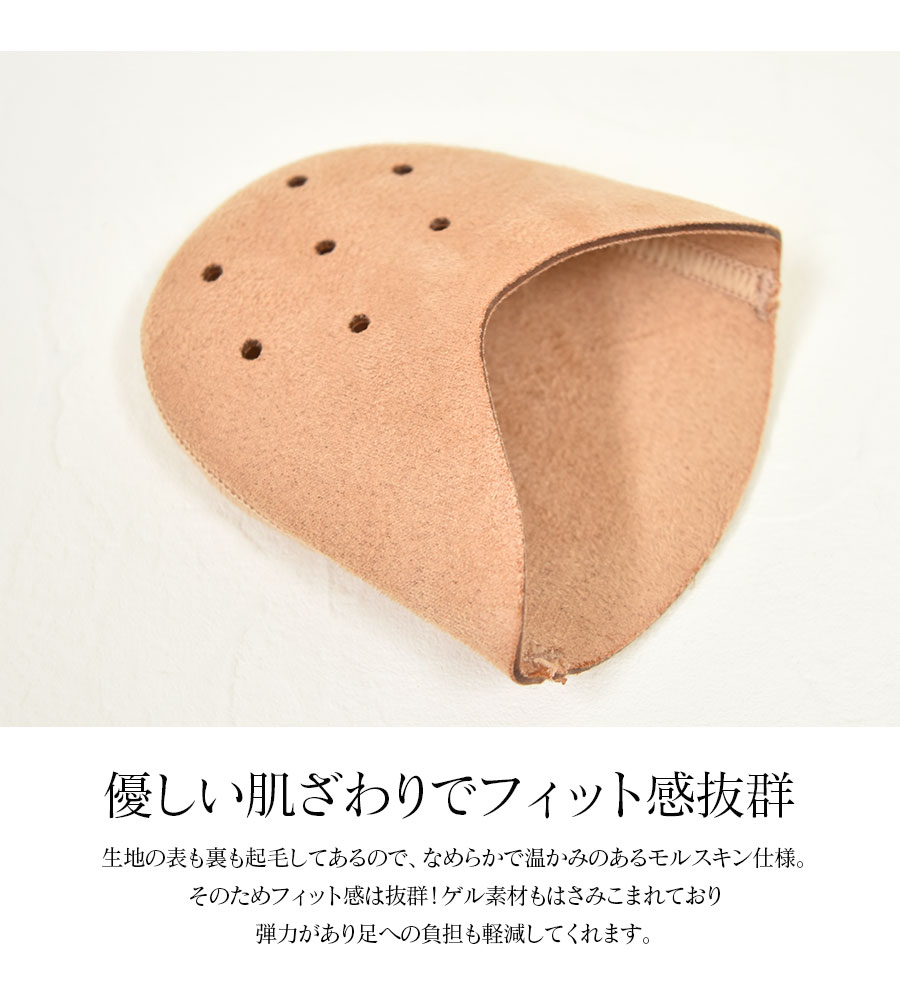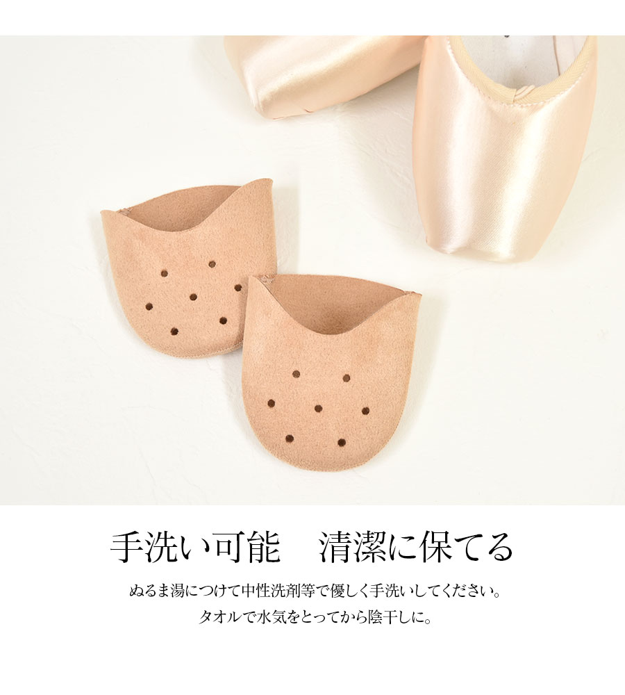 なめらかな素材で吸いつくようなフィット感で快適なポワントワークに。足の負担を軽減する柔らかなトウパッドで優しい手触りのモルスキン仕様となっています。優しい肌ざわりでフィット感は抜群!