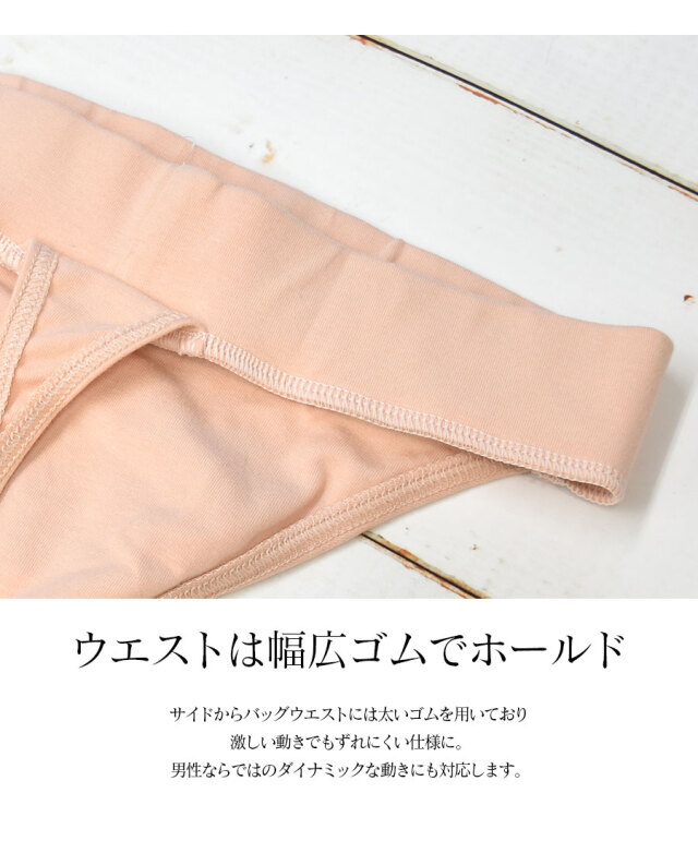 メンズ、ボーイズ用ダンスベルト。 ボーイズクラス、メンズクラスのレッスンの際に大活躍。 後ろも衣装にひびかないようTバッグになっていて衣装にも響きません。 厚手の綿素材でしっかり汗を吸収。 ウエスト部分はゴムが太くなっており男性ならではのダイナミックな動きでもずれにくく気になりません。 肌に馴染むベージュで、白いタイツの衣装でも透けにくい! バレエや新体操のレッスンなどにお使いください。