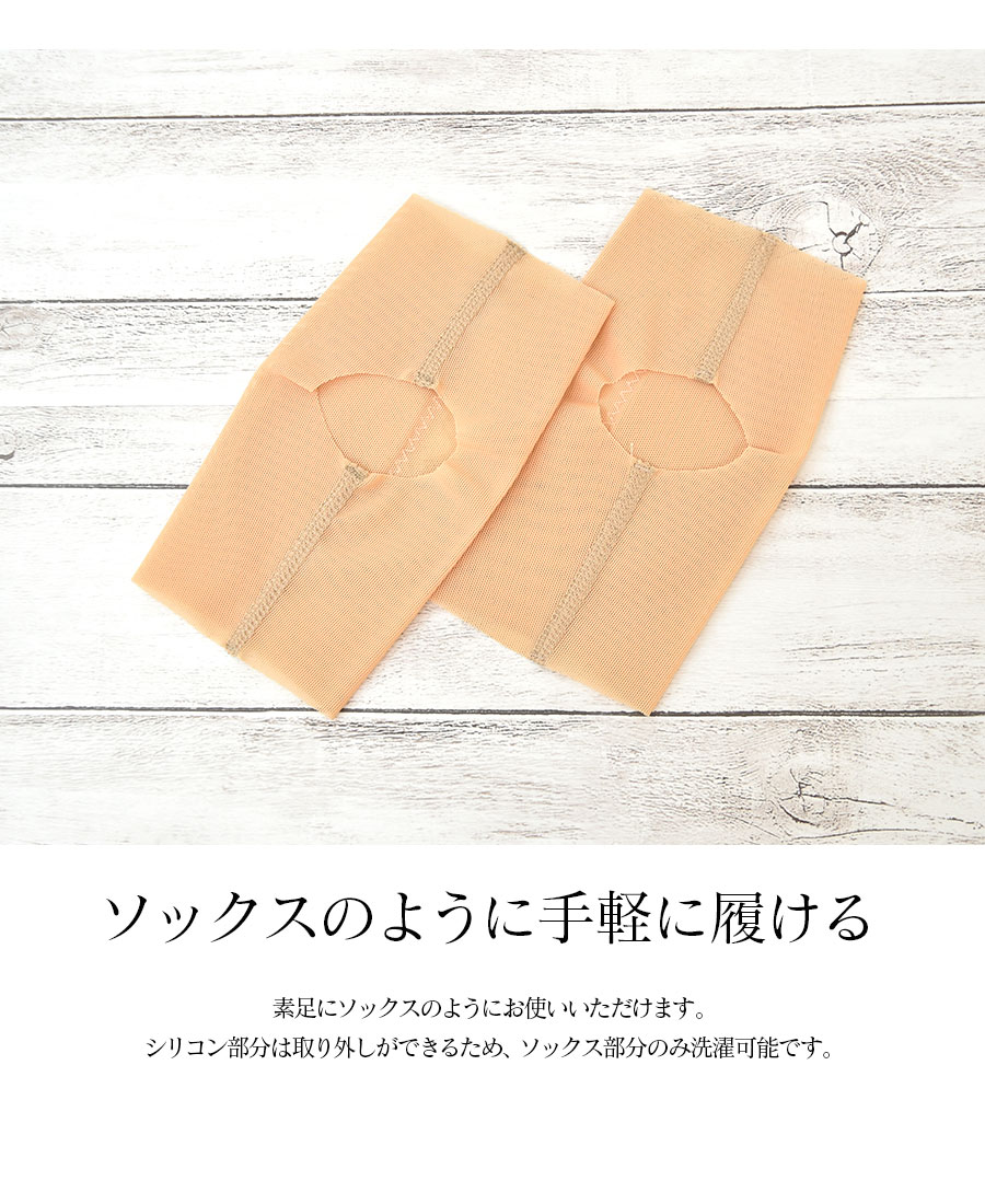 素足にソックスのようにお使いいただけます。シリコン部分は取り外しができるためソックス部分のみ洗濯可能です。女性にも男性にもおすすめ。